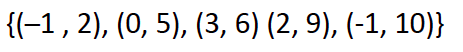Consider the relation {(-2, -3), (-1, 4), (0, 5), (1, 6)}.