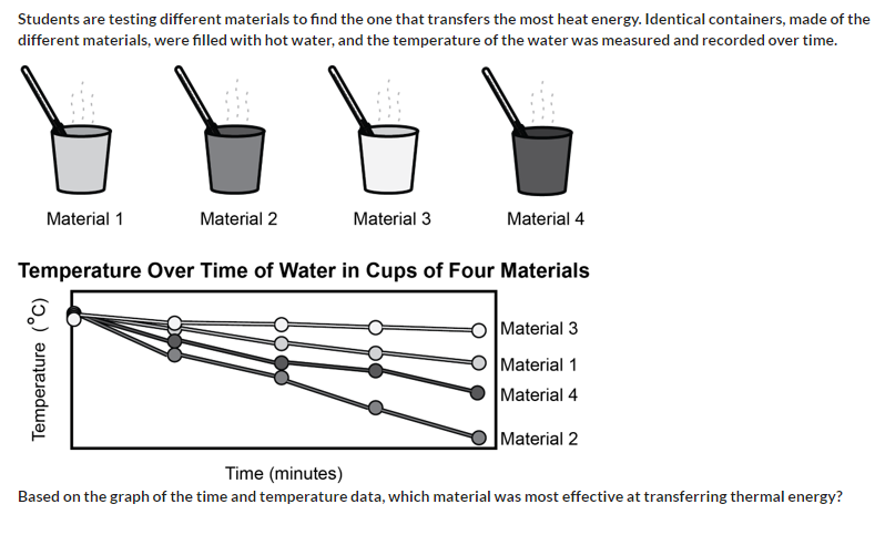 An ivestigation to determine which material can maximize heat energy transfer would mostlikely include which of the following?