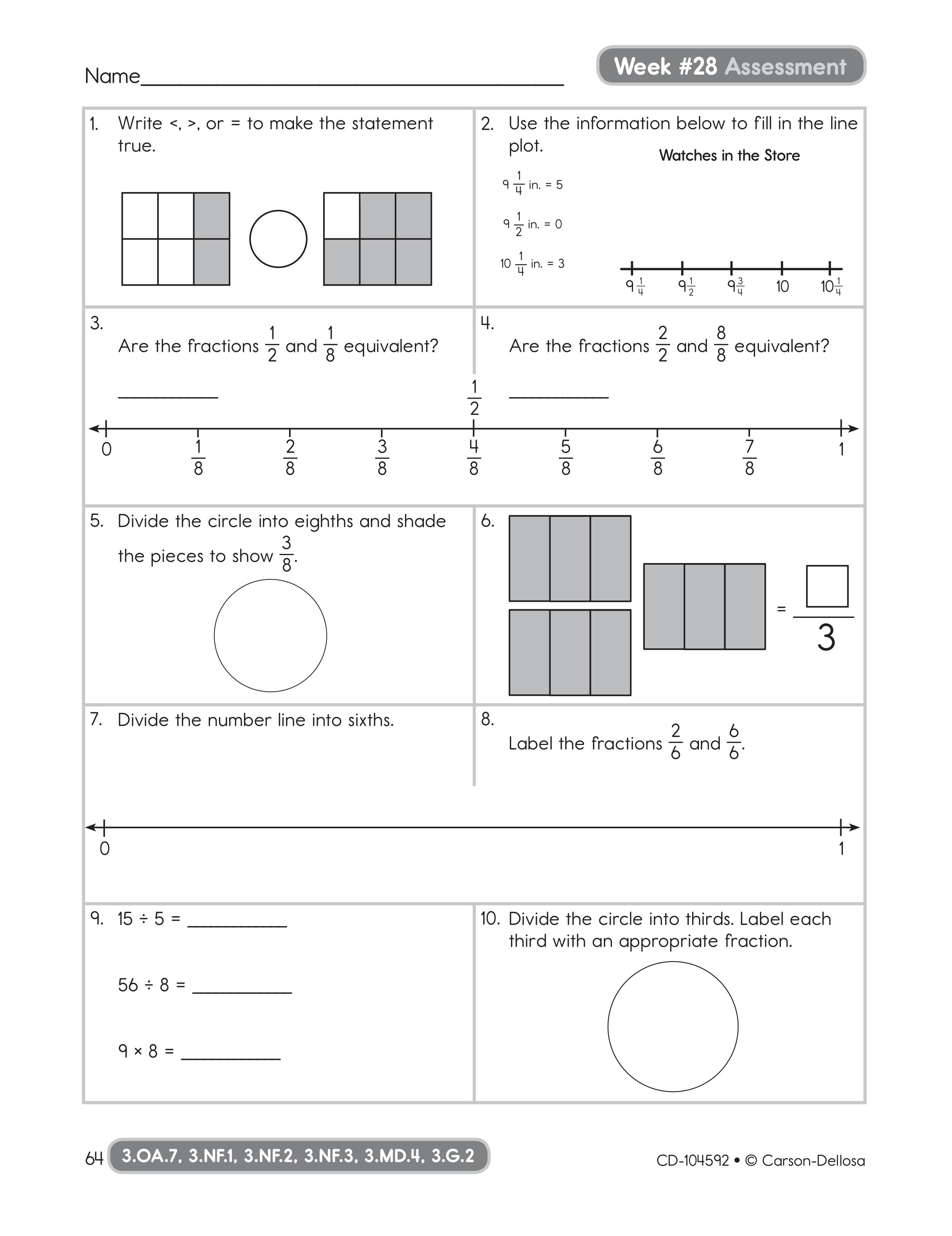 Divide the circle into thirds. Label each third with an appropriate fraction.