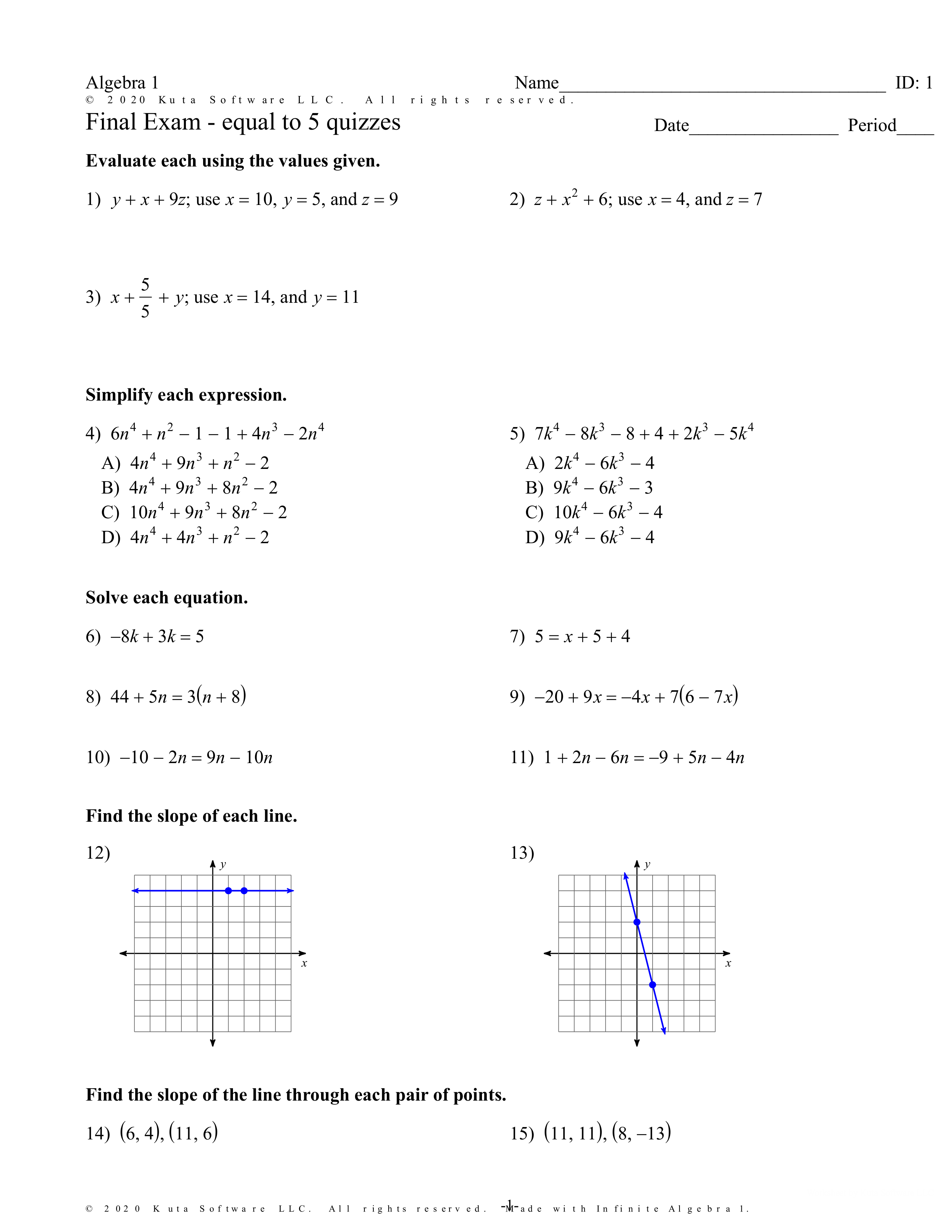 Final for Math 1 Sem 2 2020
