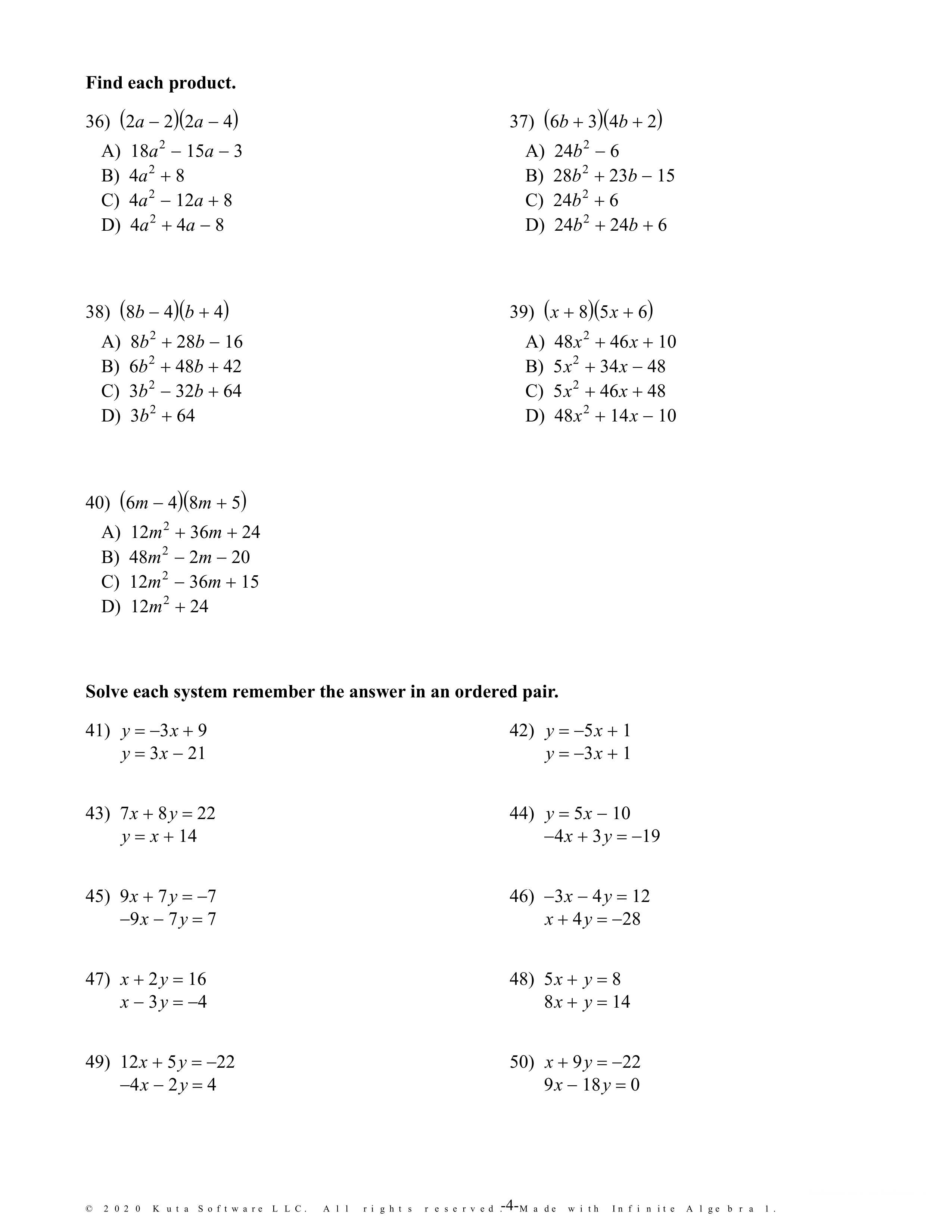 Solve each system, remember the answer is an ordered pair.