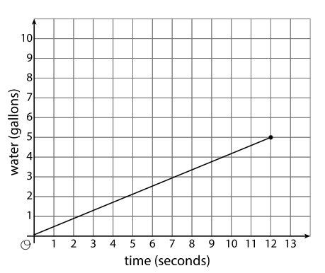 Water runs from a hose into a bucket at a steady rate. The amount of water in the bucket for the time it is being filled is shown in the graph.