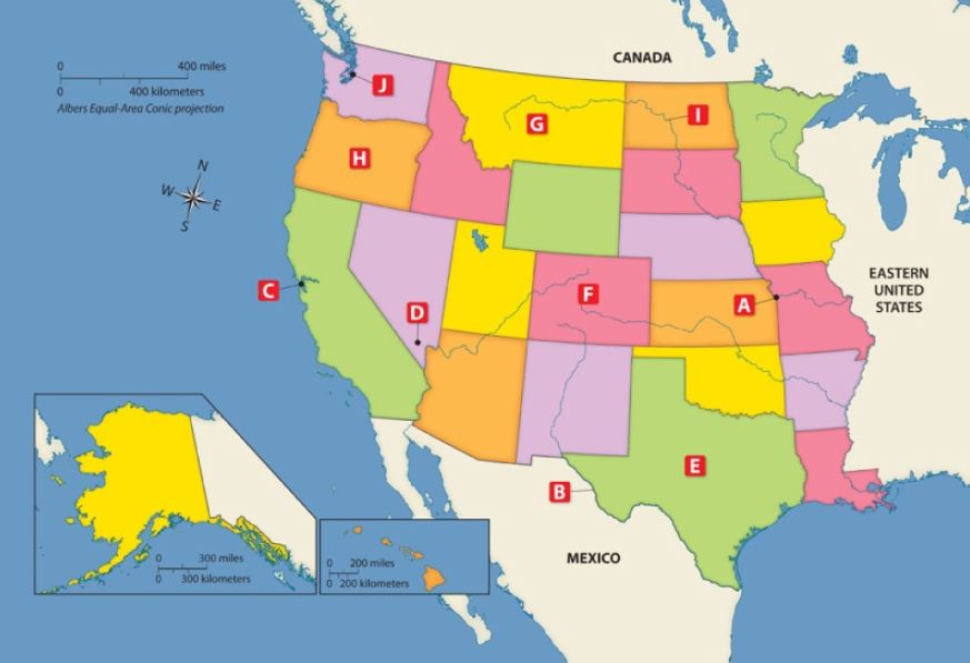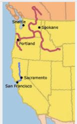 Missouri, Platte, Kansas, Arkansas, and Rio Grande Rivers | arrow_right_alt | Located north of the Colorado River, this river flows from the mountains into the Pacific Ocean. |