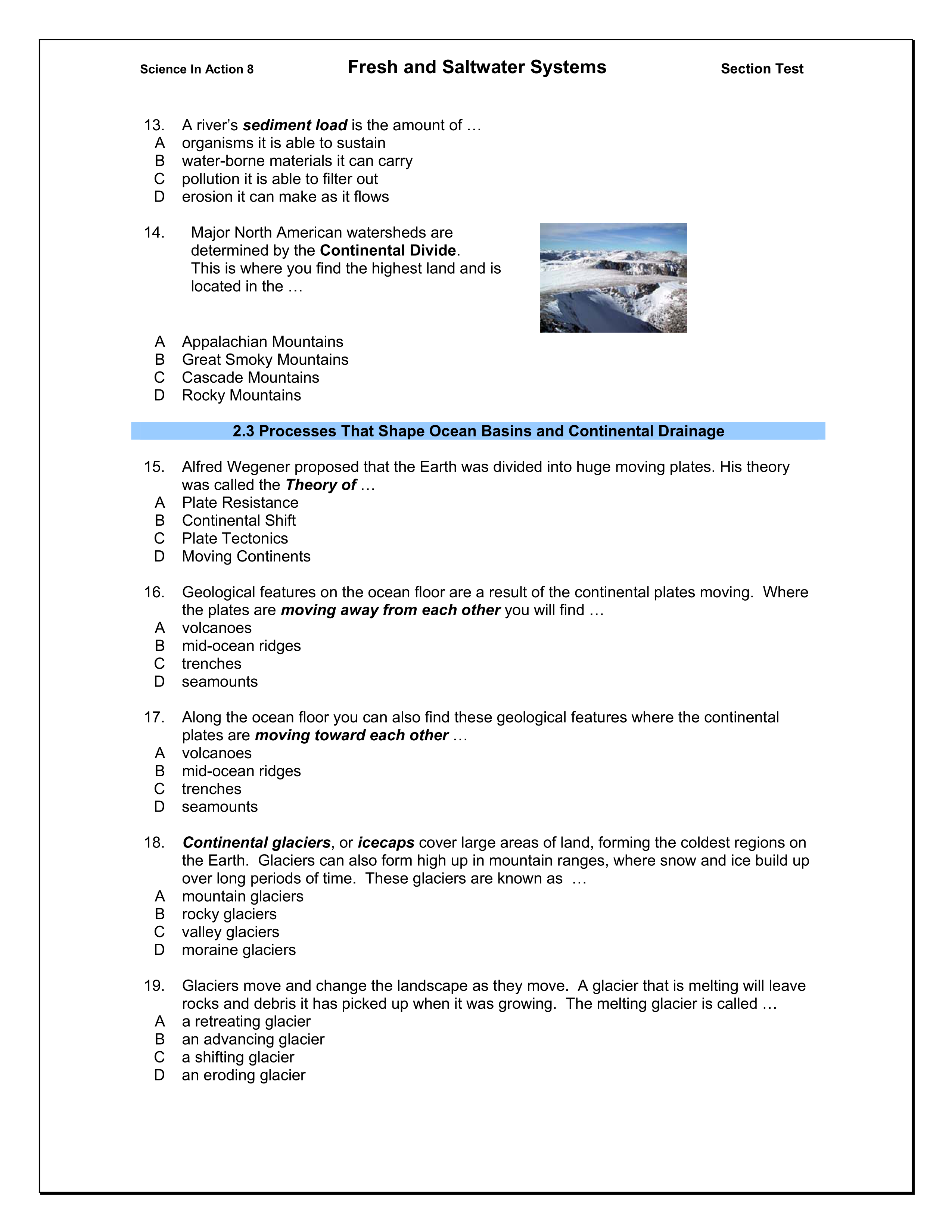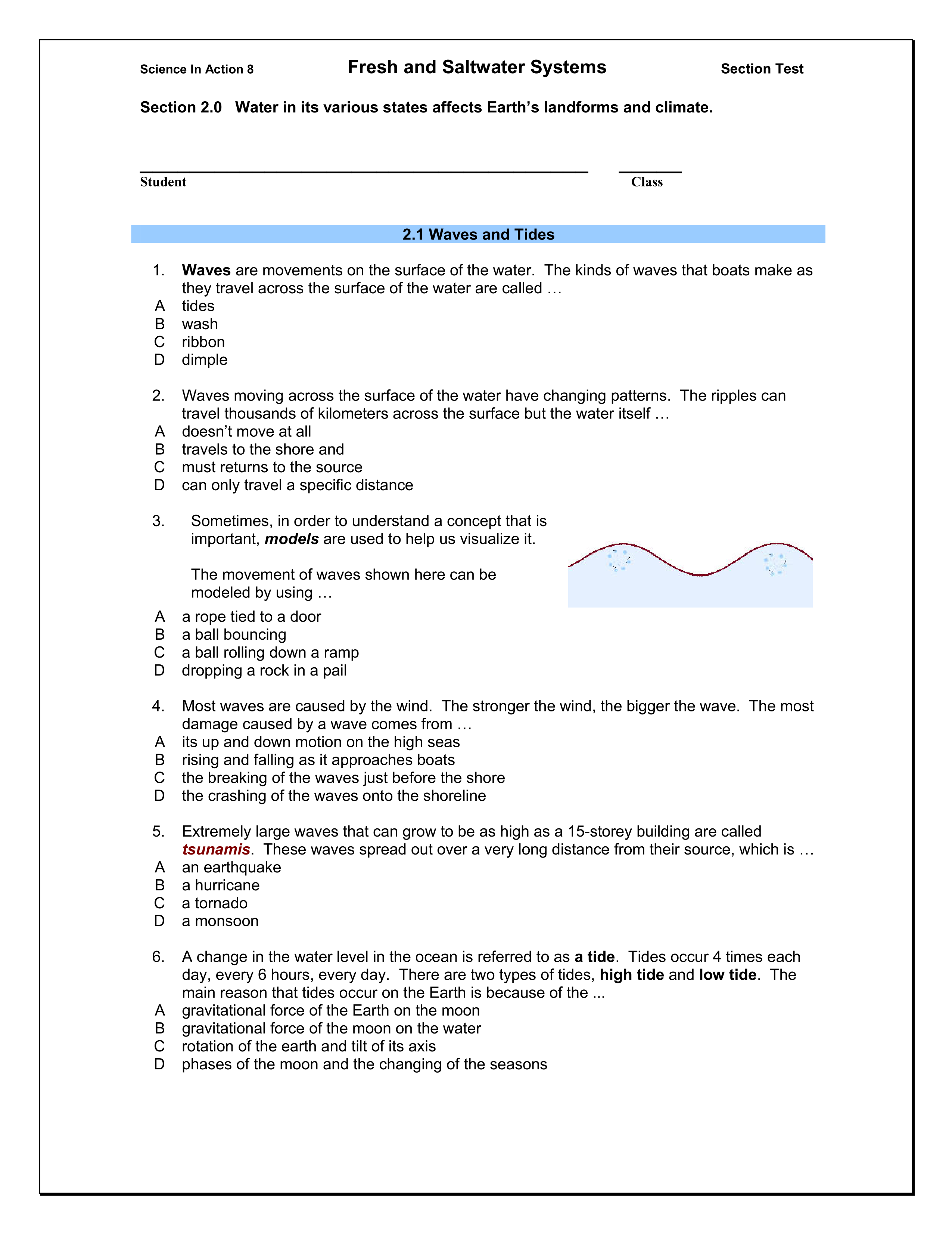 Grade 8 Science: Section 2.0 Quiz Salt and Fresh Water