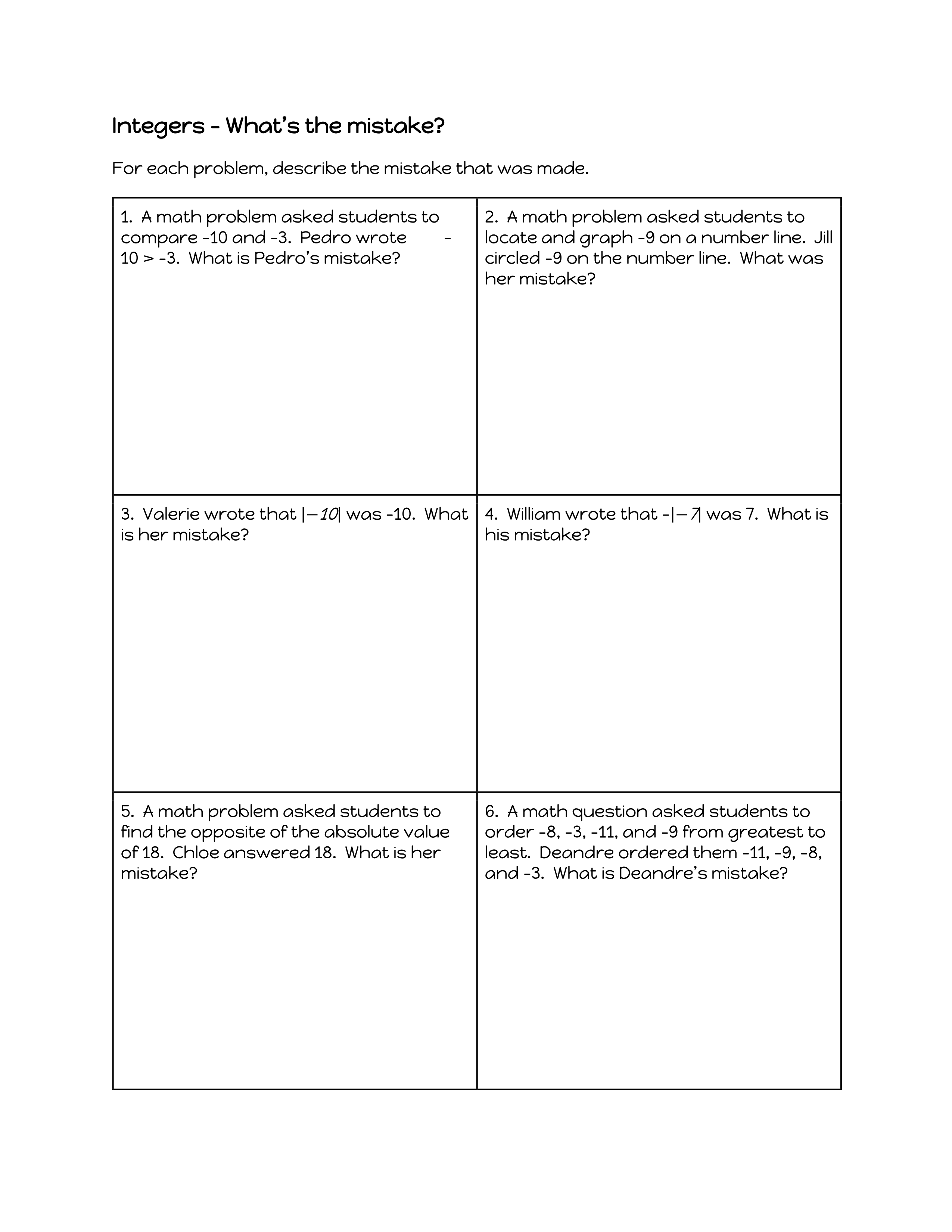 LE 1: Integers Whats the Mistake