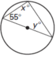 The quadrilateral is inscribed within a circle, find the measure of x and y: