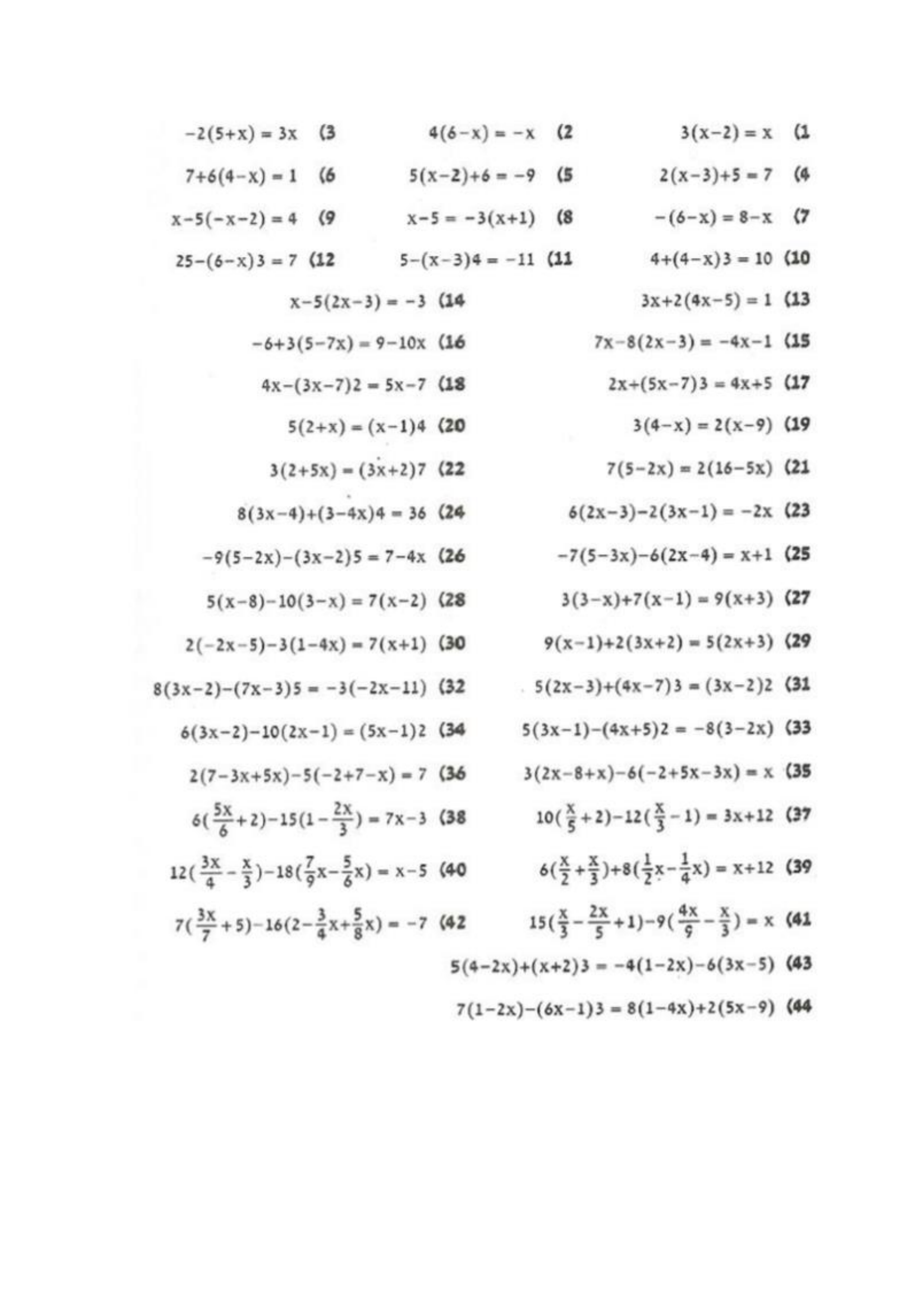 עבודת כיתה לכיתה ז - משוואות עם סוגריים