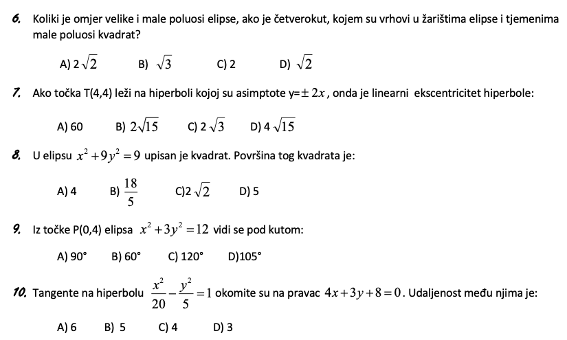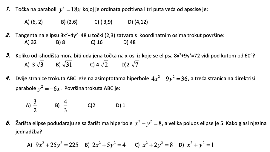 3.r, Krivulje drugog reda - Ponavljanje 2
