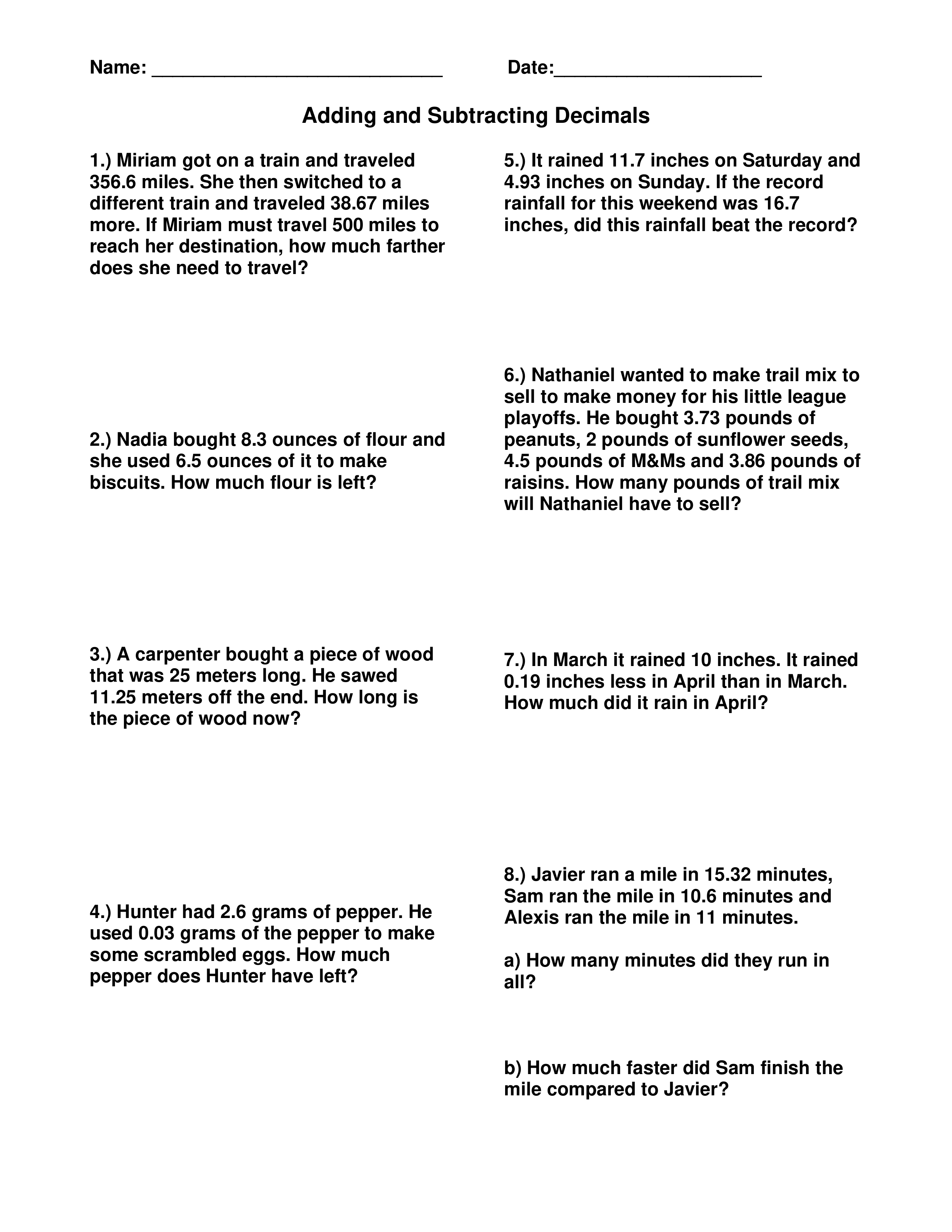 LE 3 Decimal Word Problems