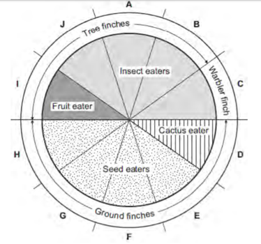 c)Describe finch species G. Use only information from the pie chart. [level 5-6]