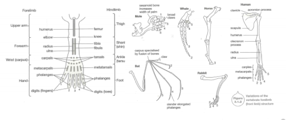 Some different vertebrate limbs are shown in figure2 above, note, they are not drawn to scale.