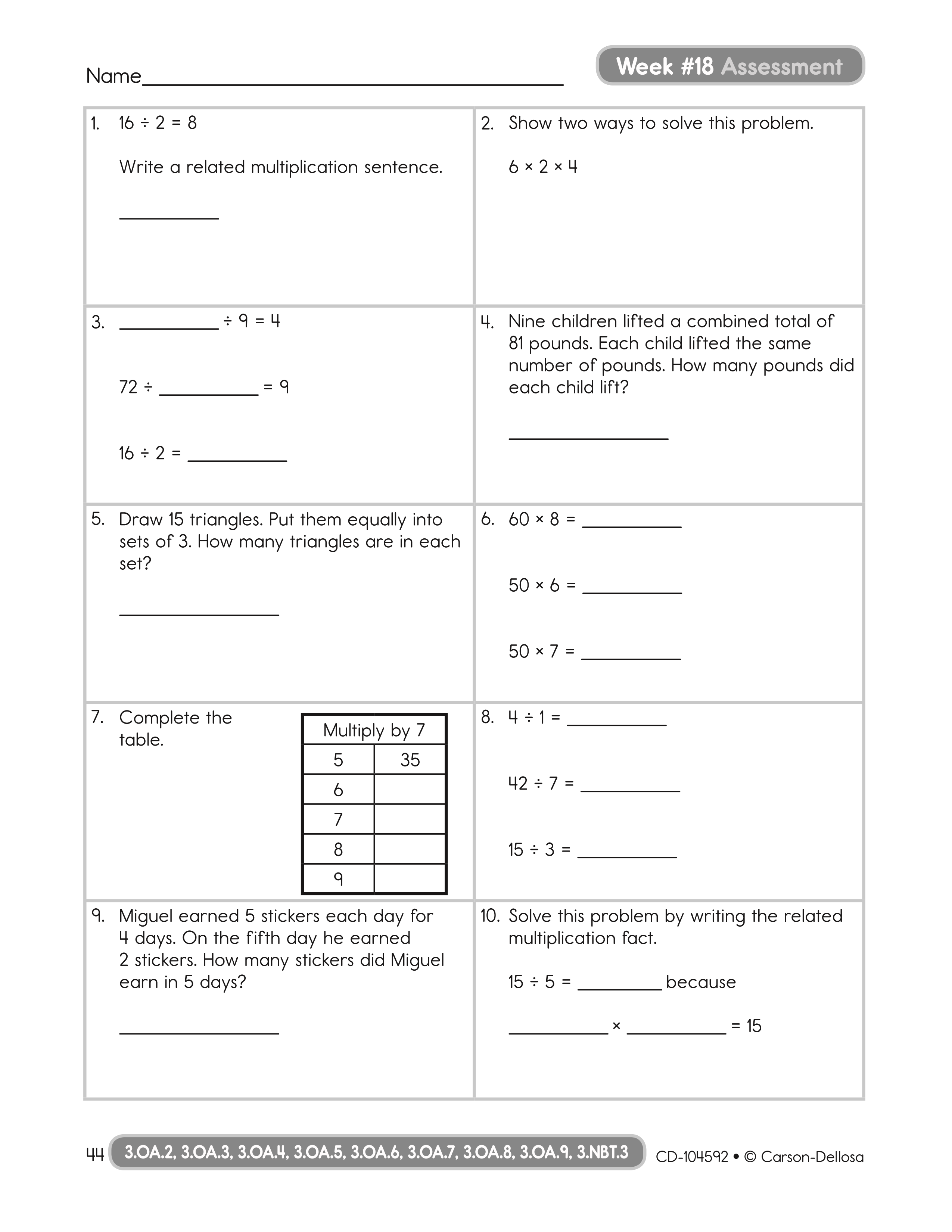 Week 18 Math Assessment