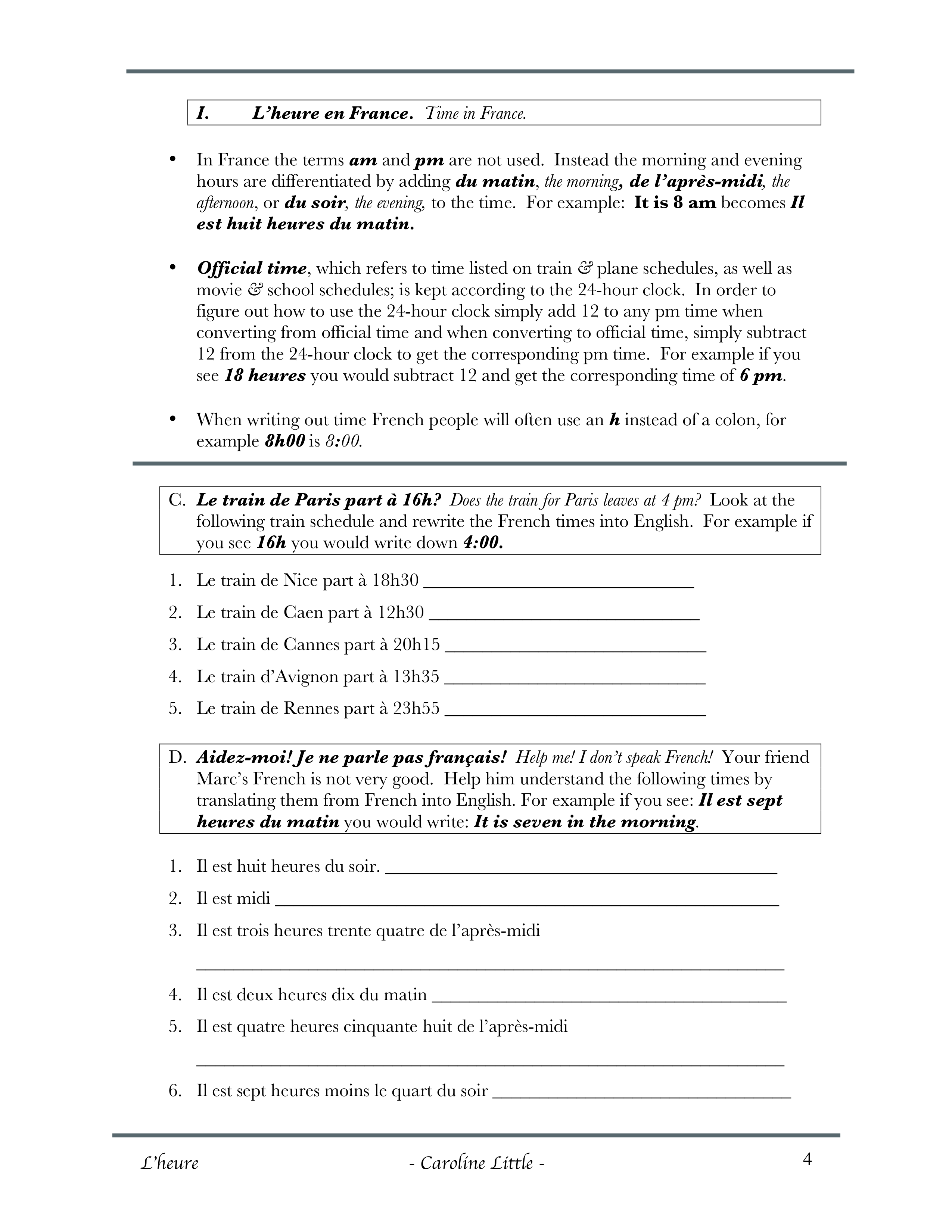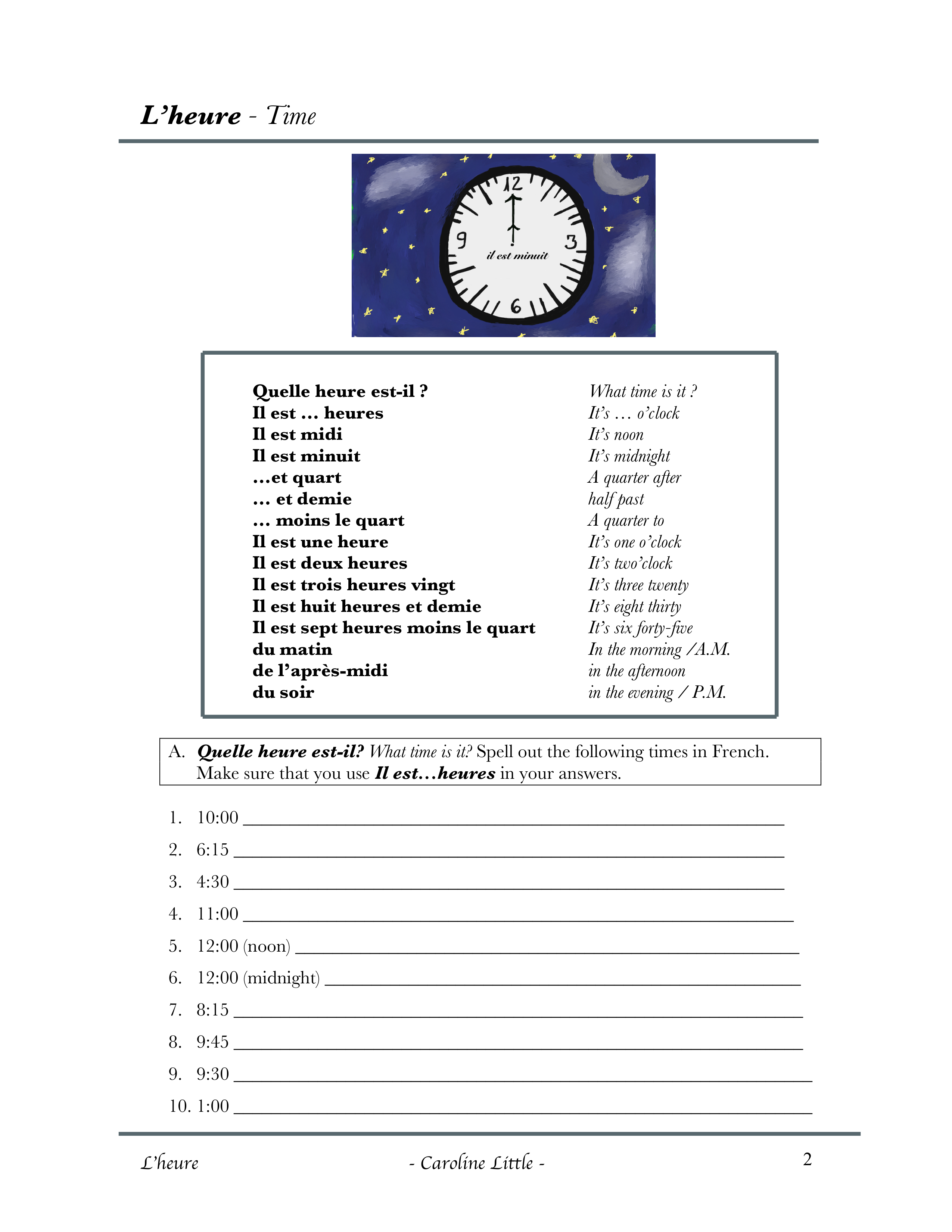 Learn/Formative: Fill in the following chart with your classes, the time you spend on them (in class and at home) and the classes your French counterpart would take and the hours they spend.