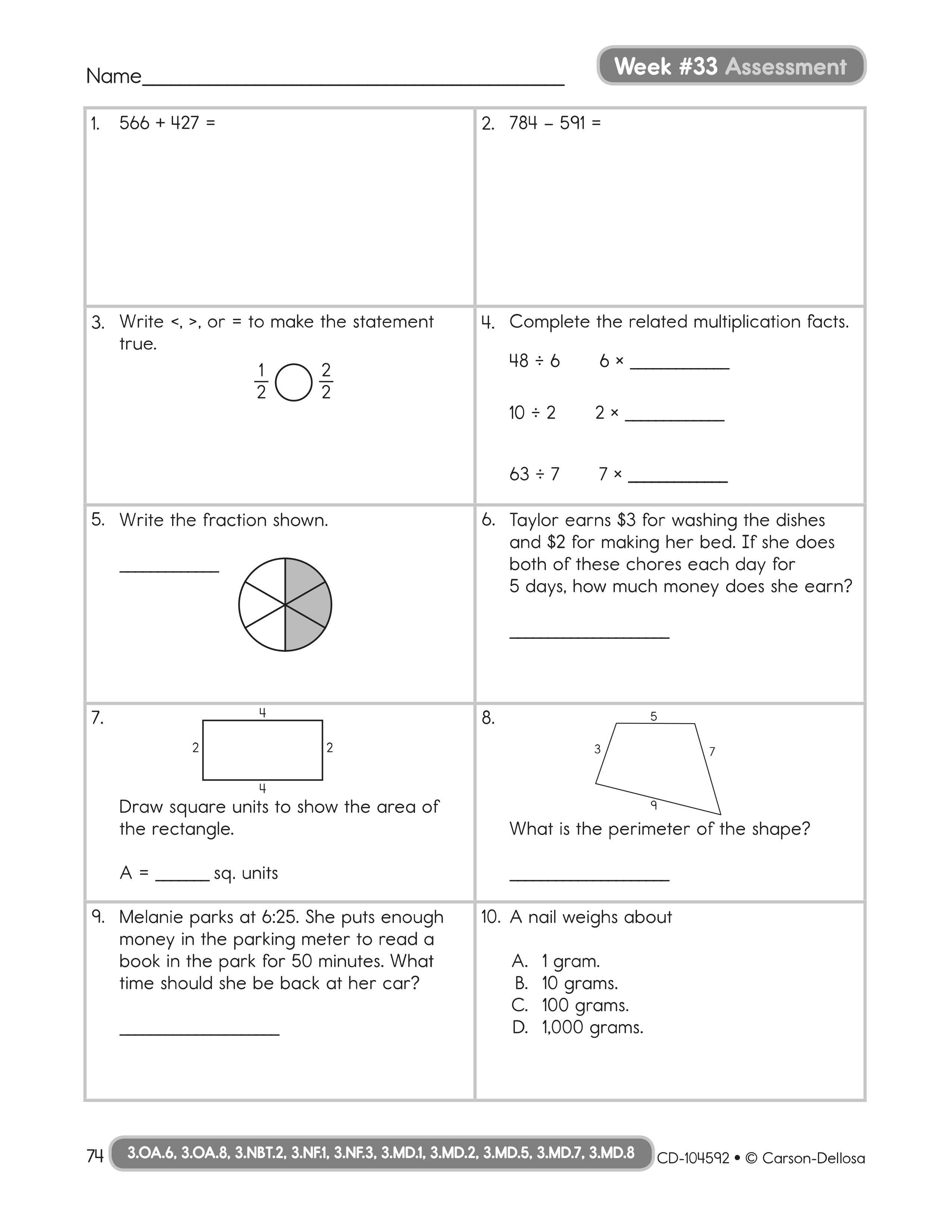 Week 33 Math Assessment