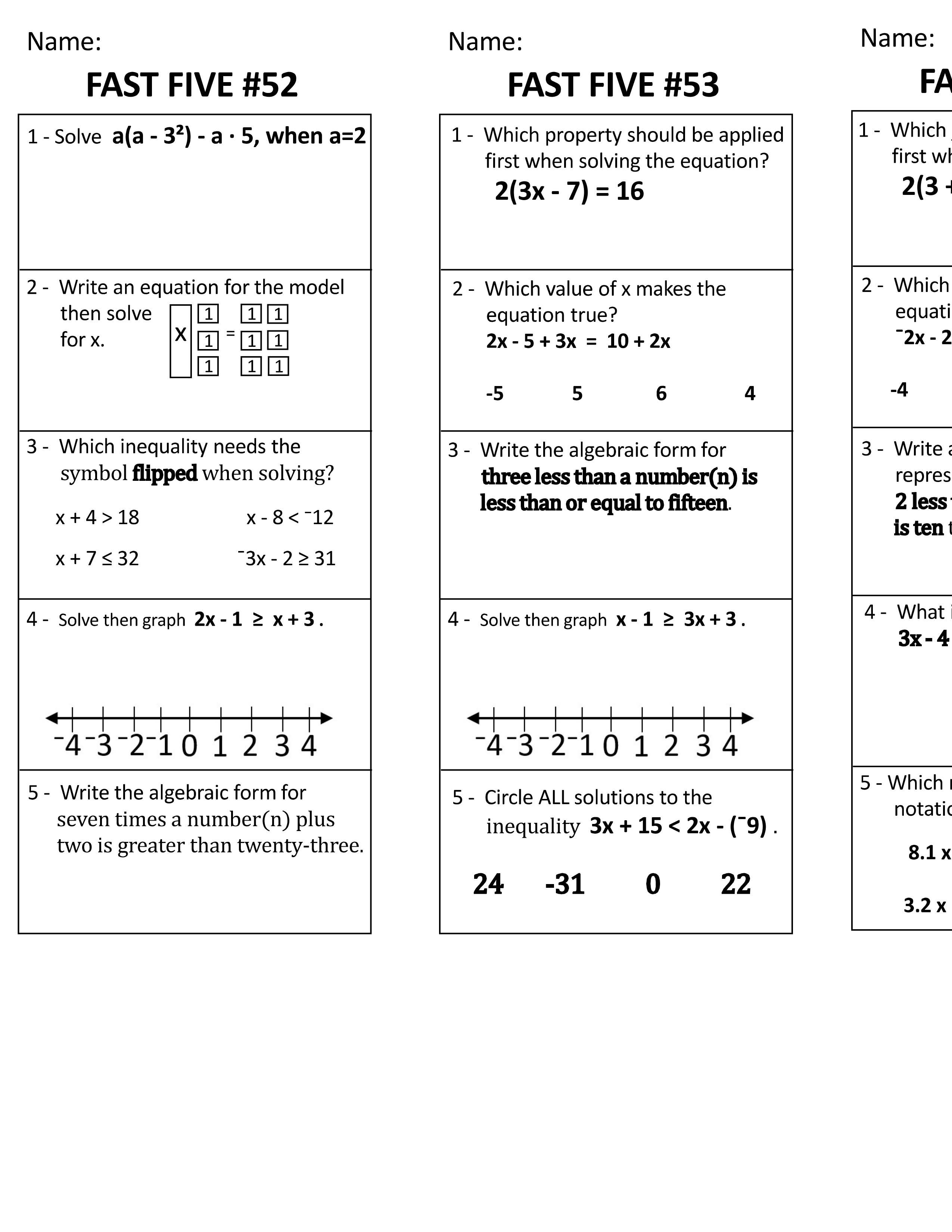 Write the algebraic form for three less than a number (n) is less than or equal to fifteen.