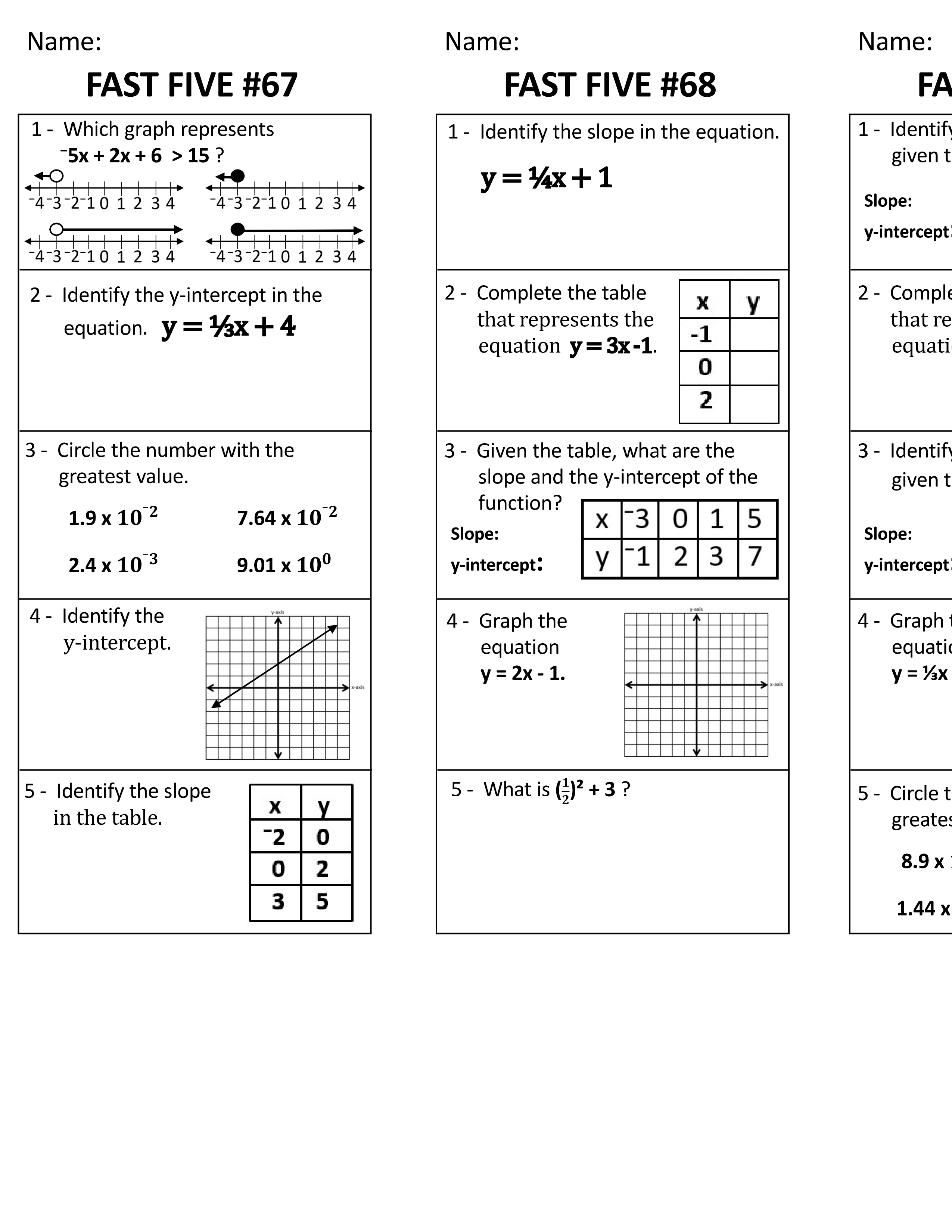 Math 8 Fast 5s (#67 - #69)