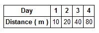Becky began an exercise program. She made this table to show the pattern that she followed when she ran each day.