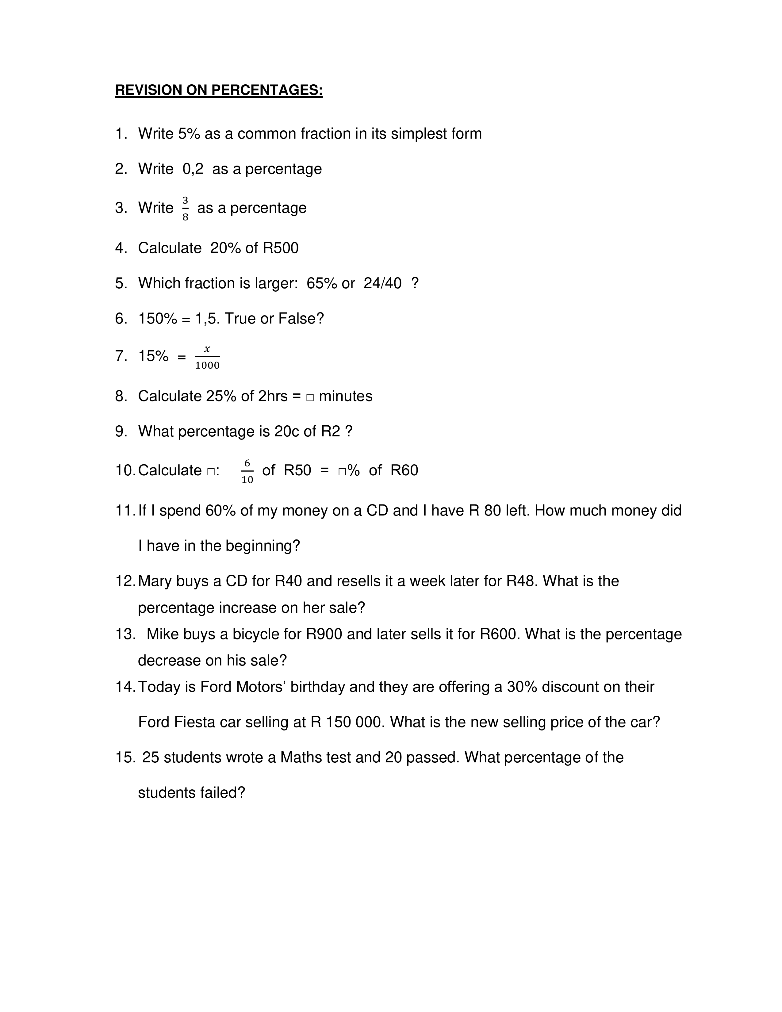 Revision on percentages KD