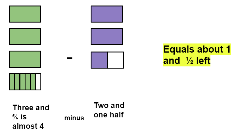 Jordan started the day with 3 and five sixths cups of water. He drank 2 and one half cups before lunch. Determine a reasonable estimate for the amount of water he has left at lunch.