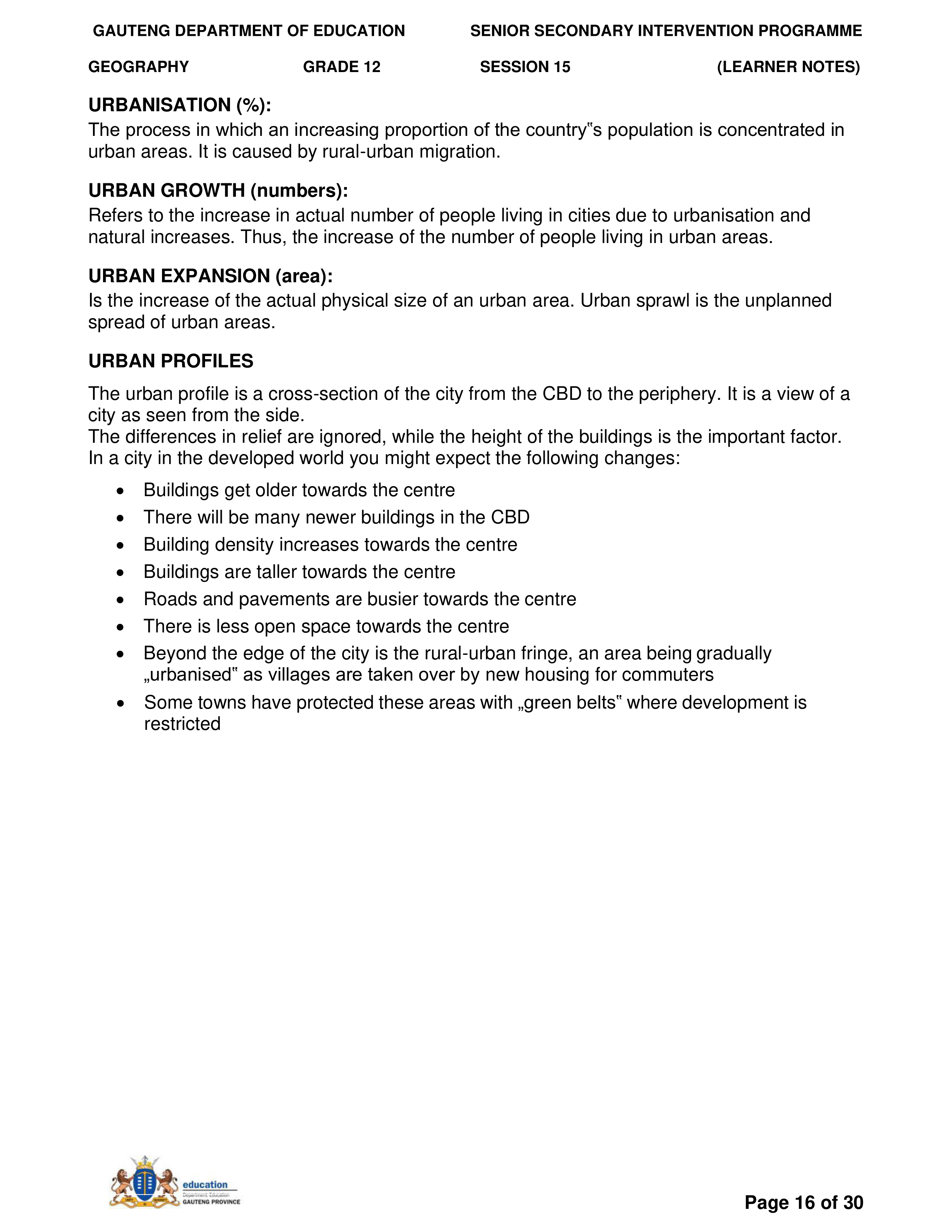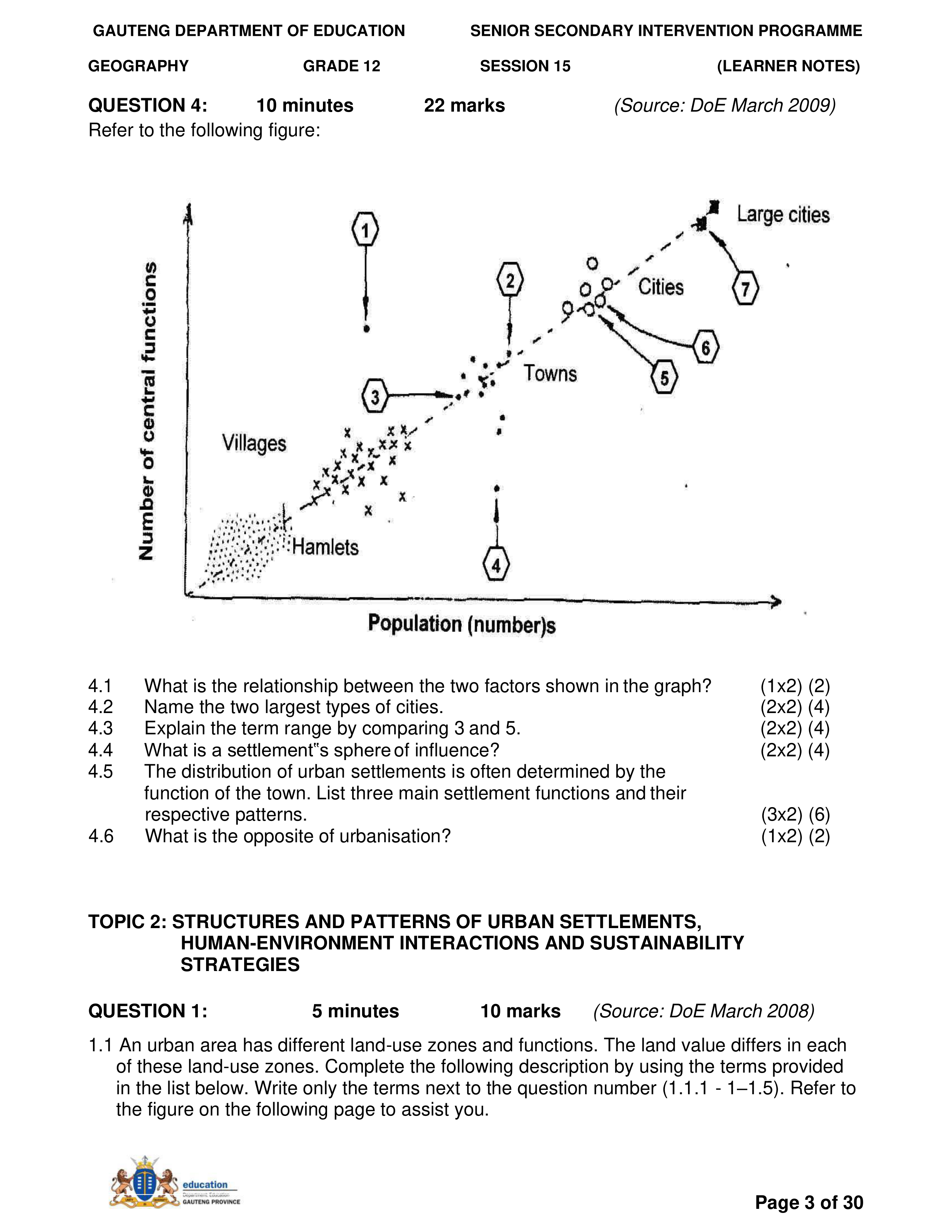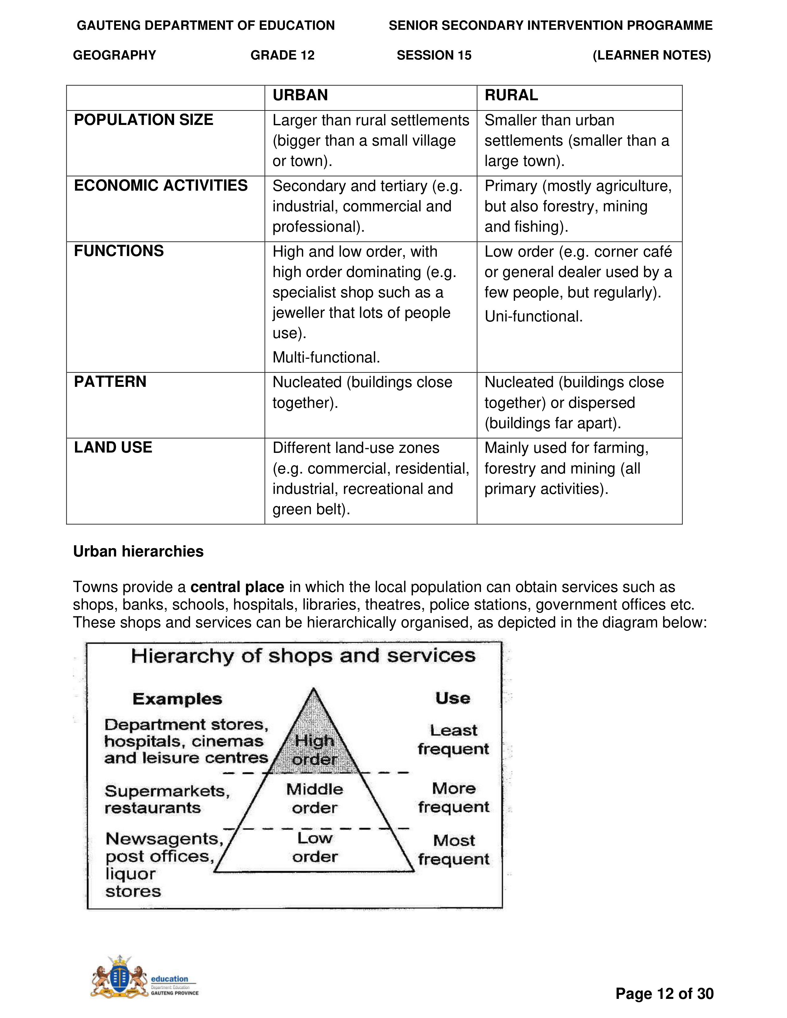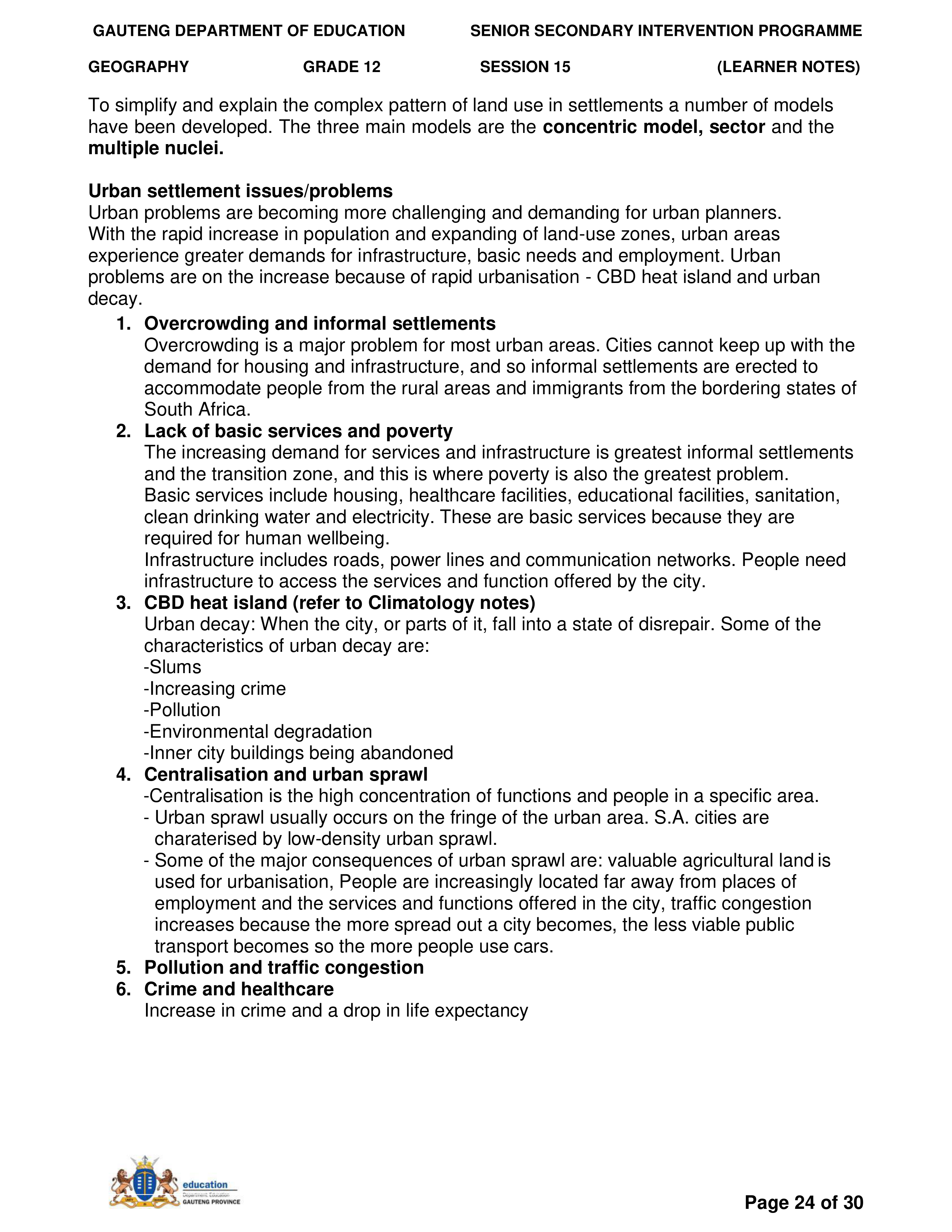 Grade 11 Revision Urban Settlement
