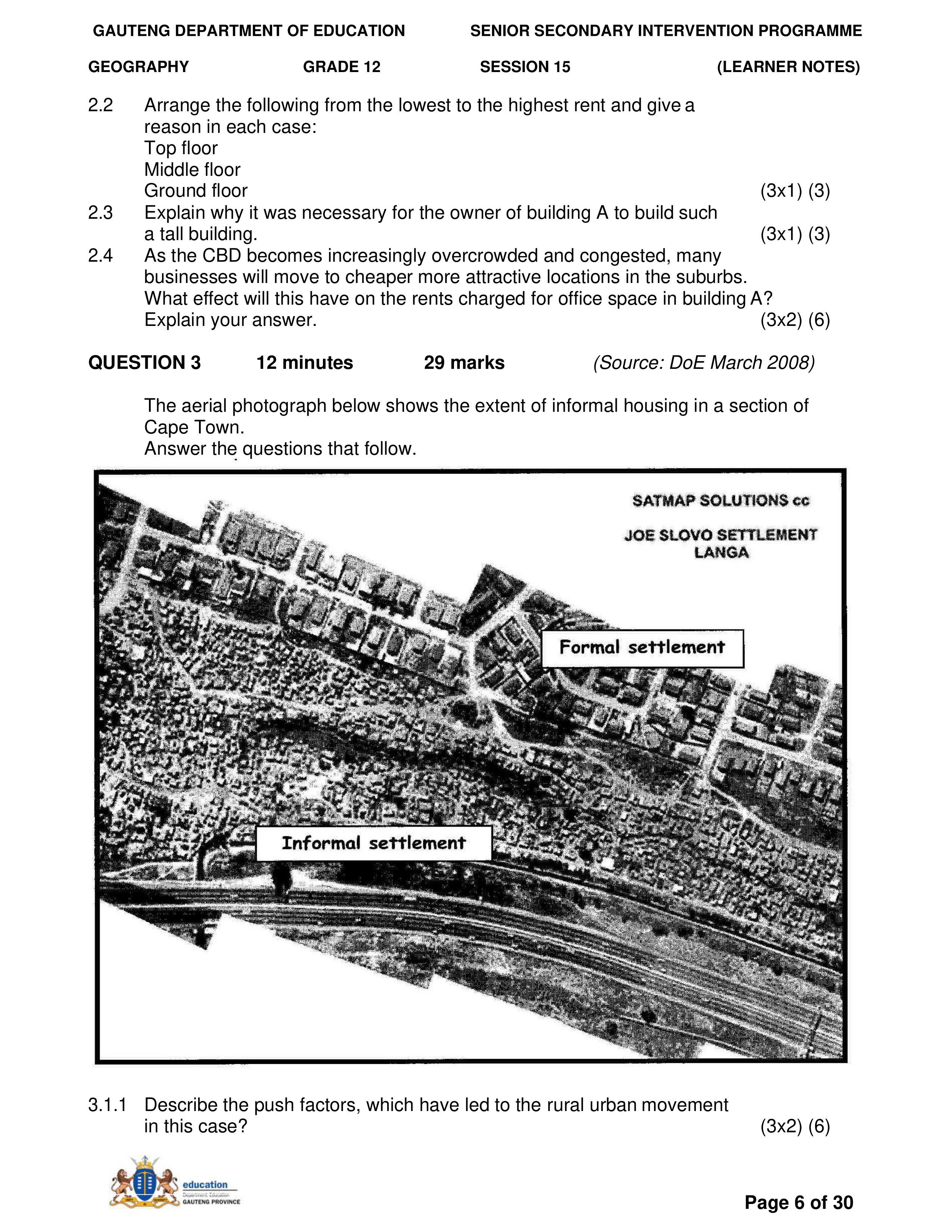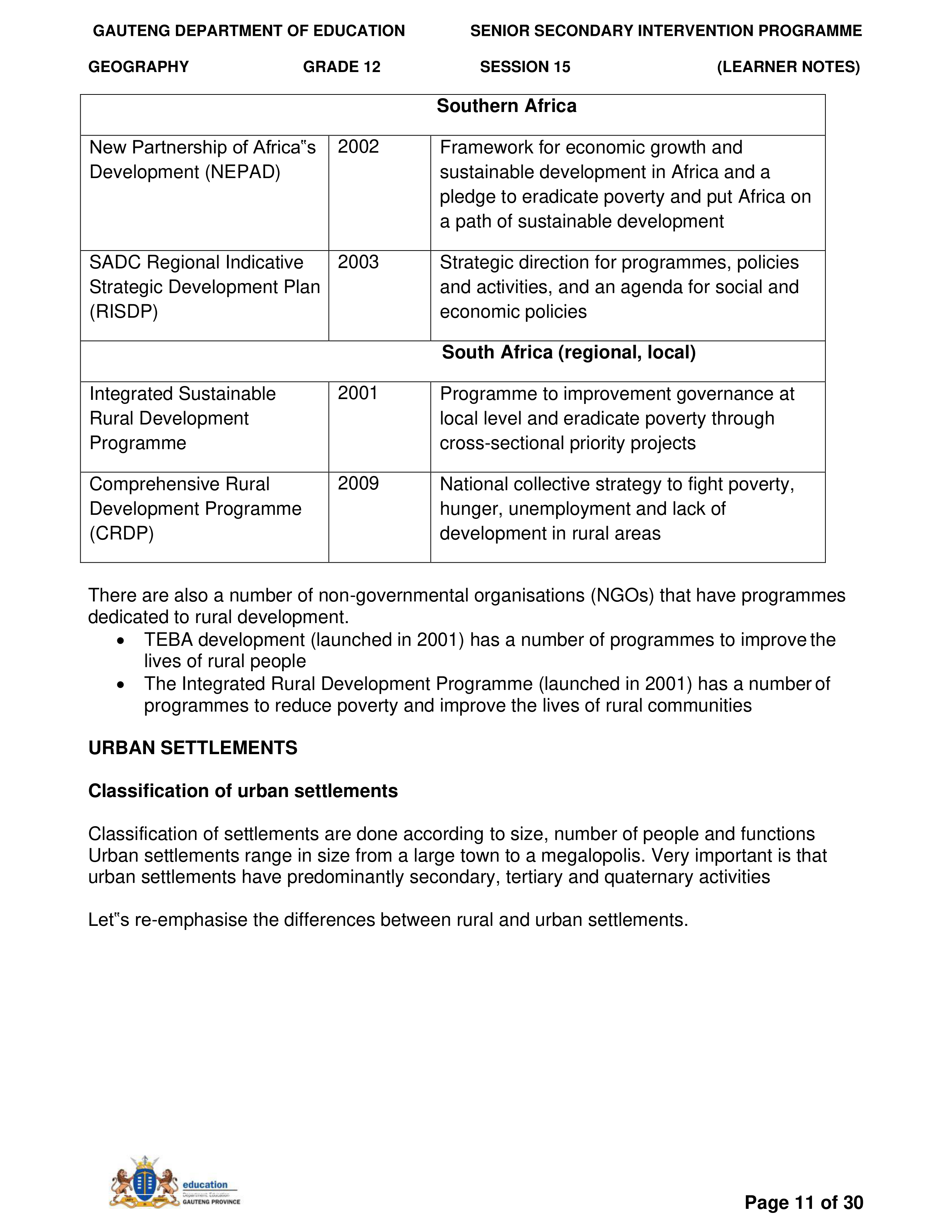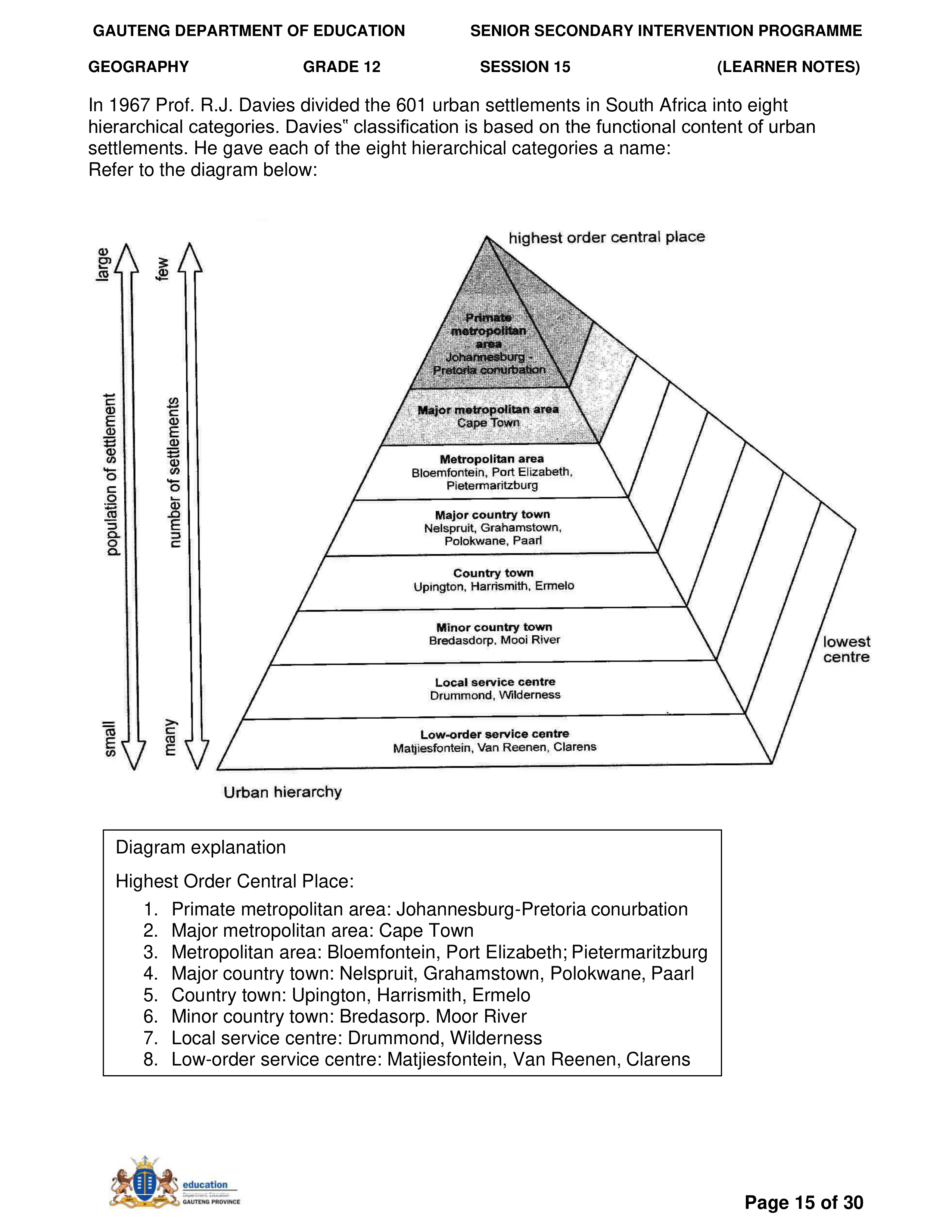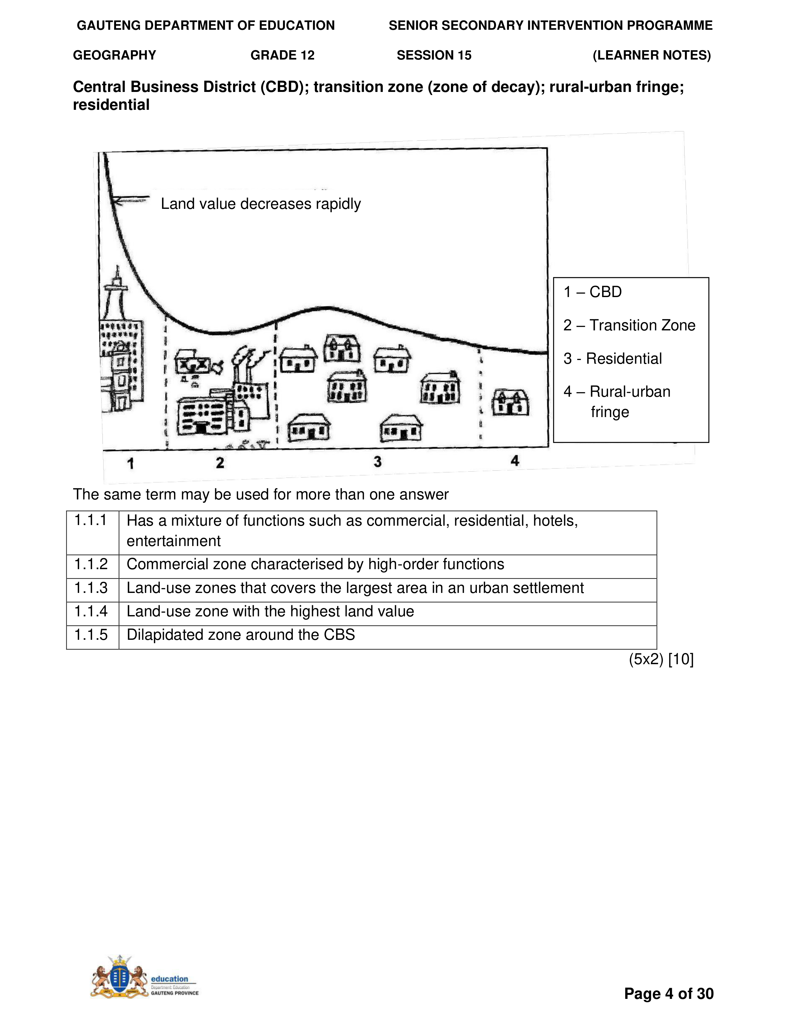 Grade 11 Revision Urban Settlement