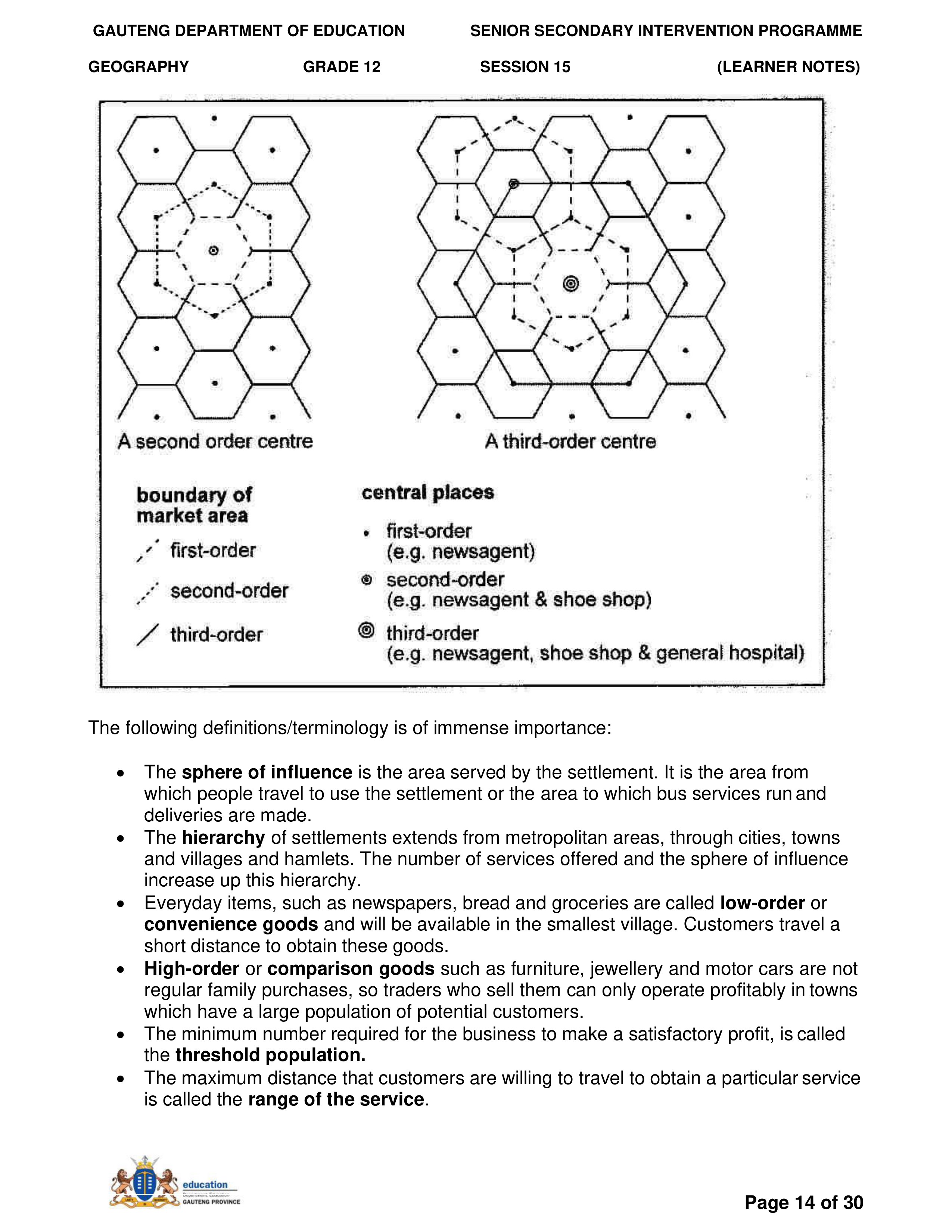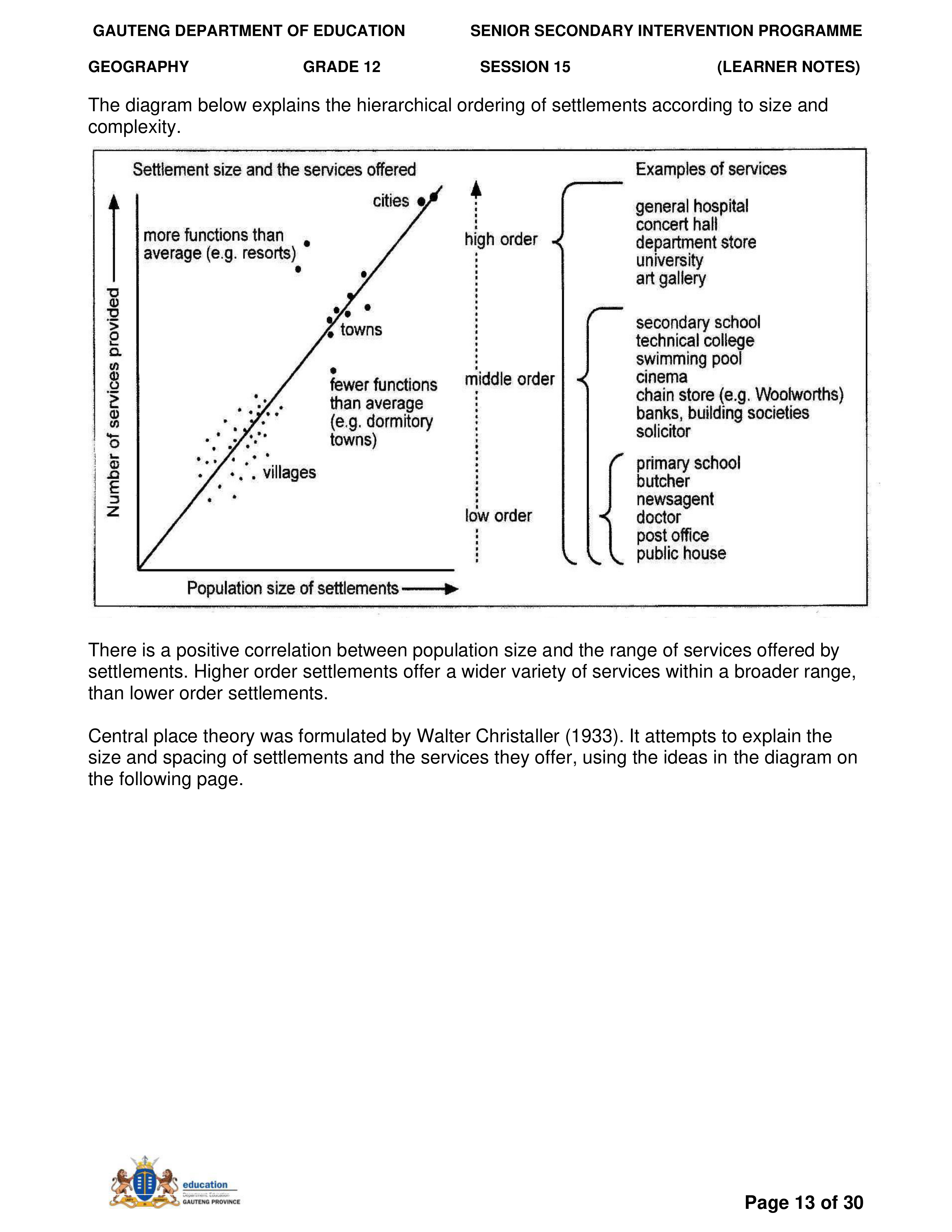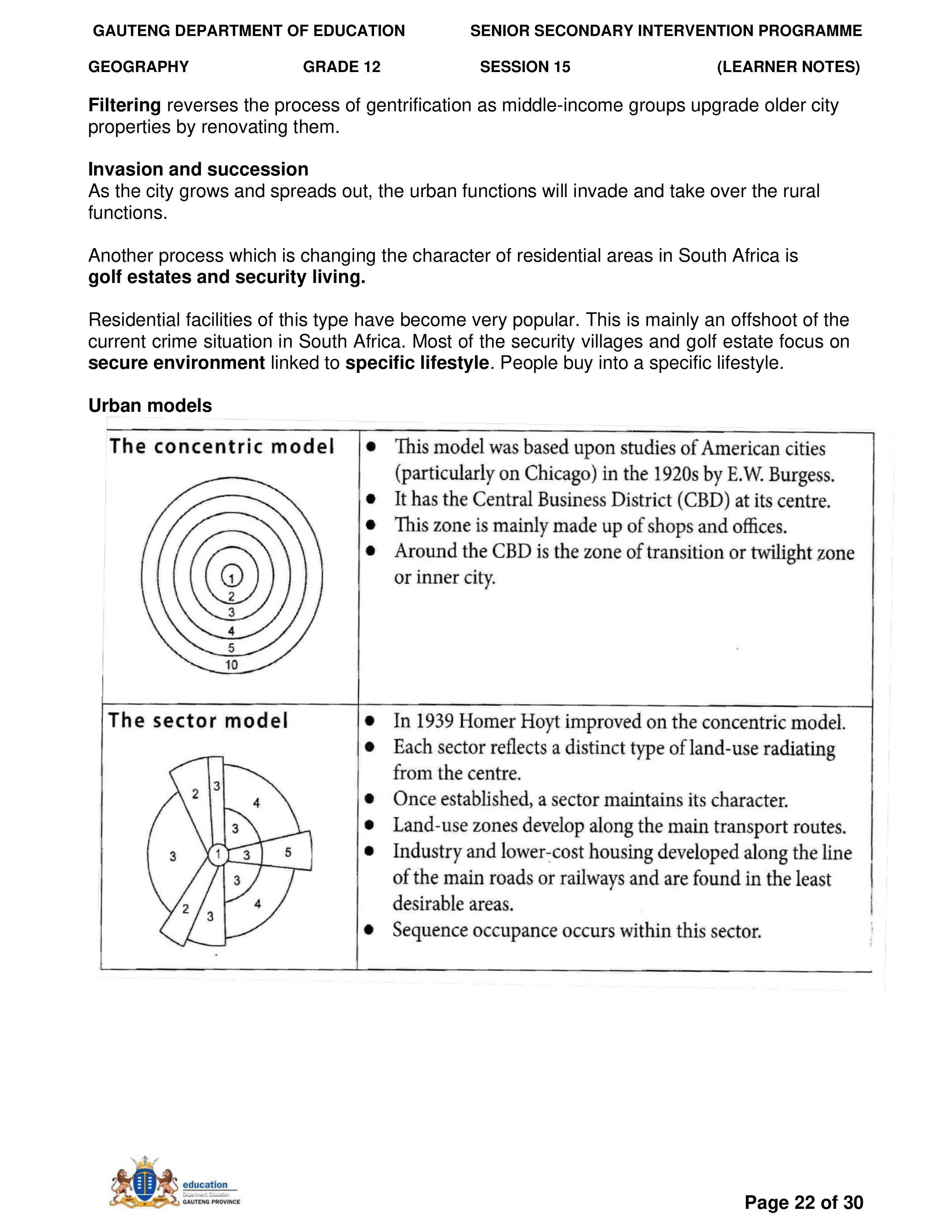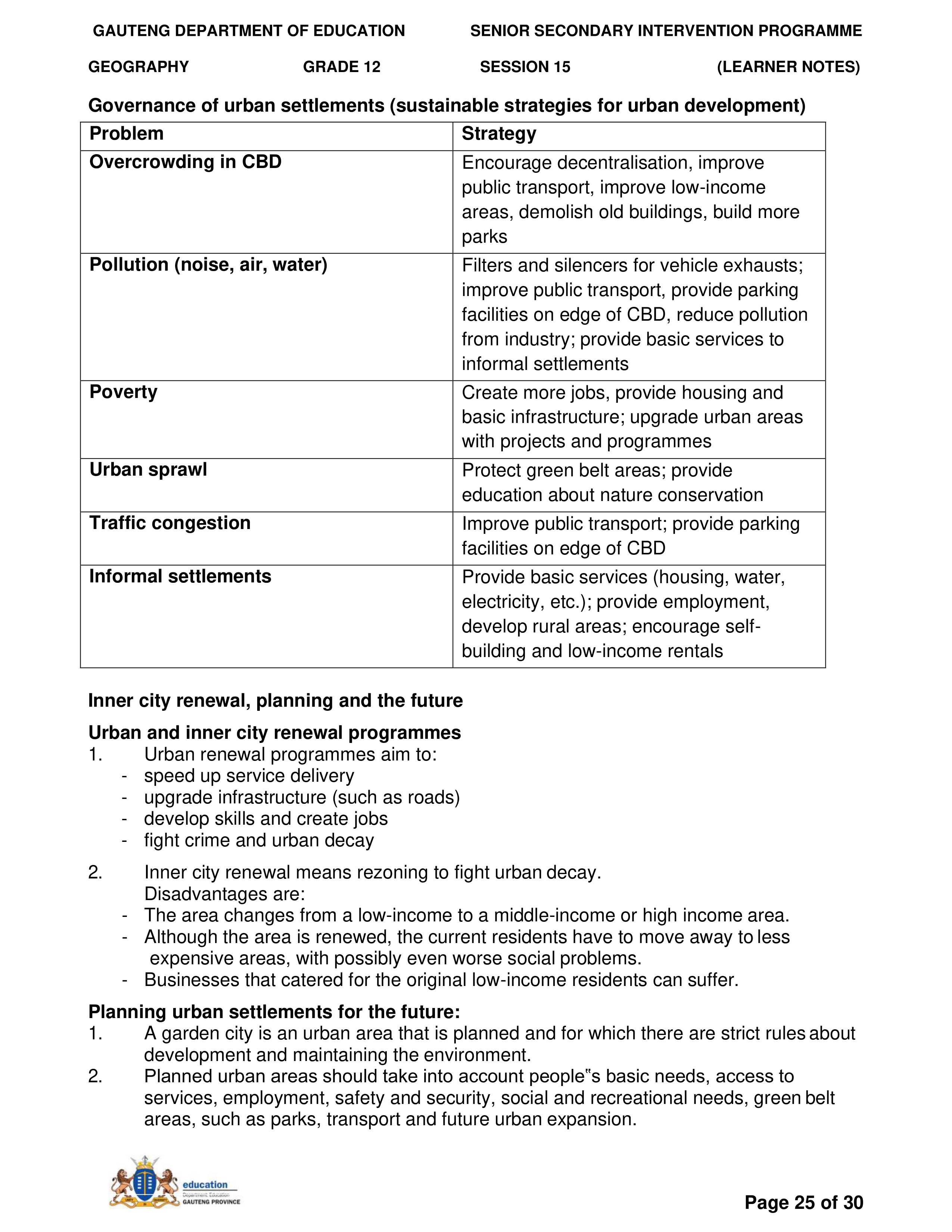 Grade 11 Revision Urban Settlement