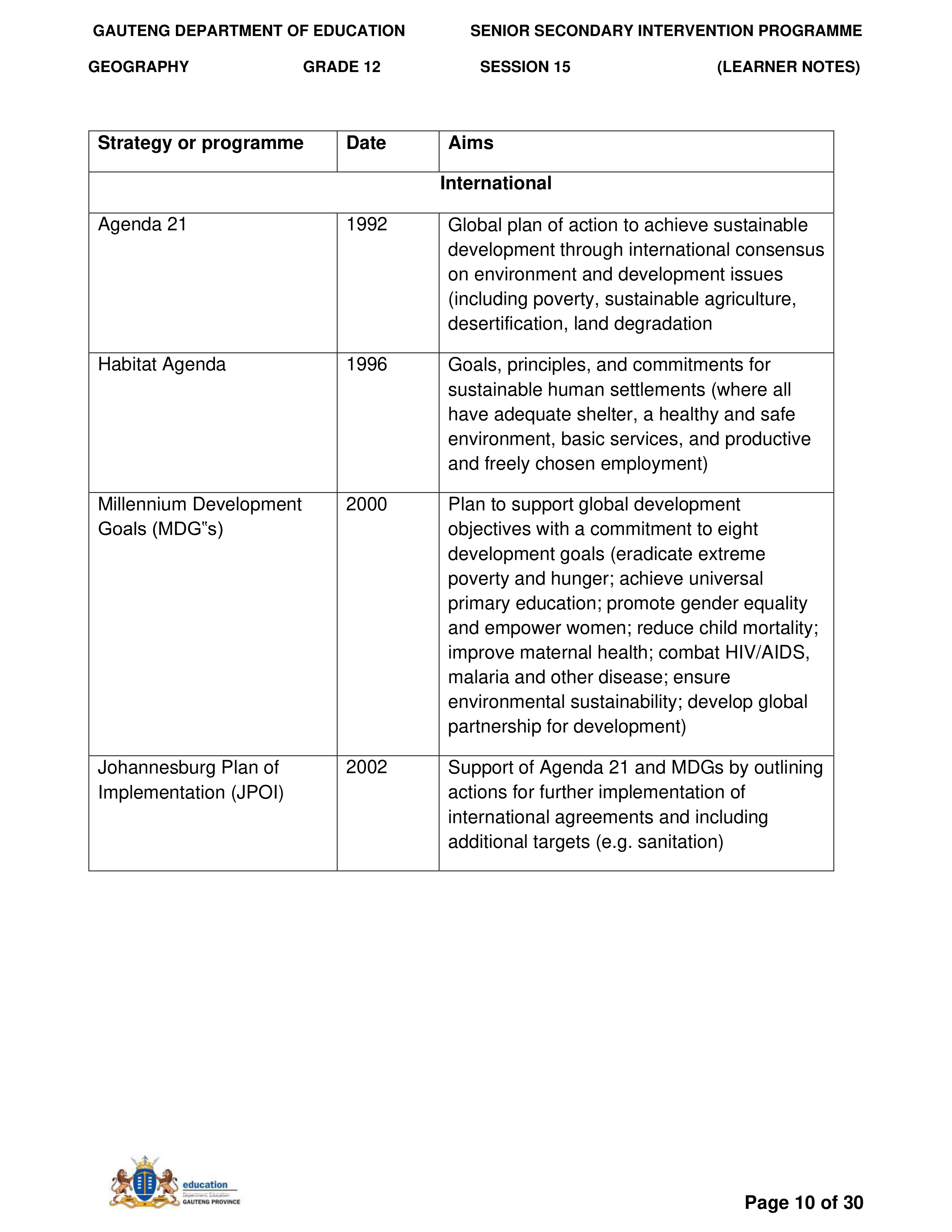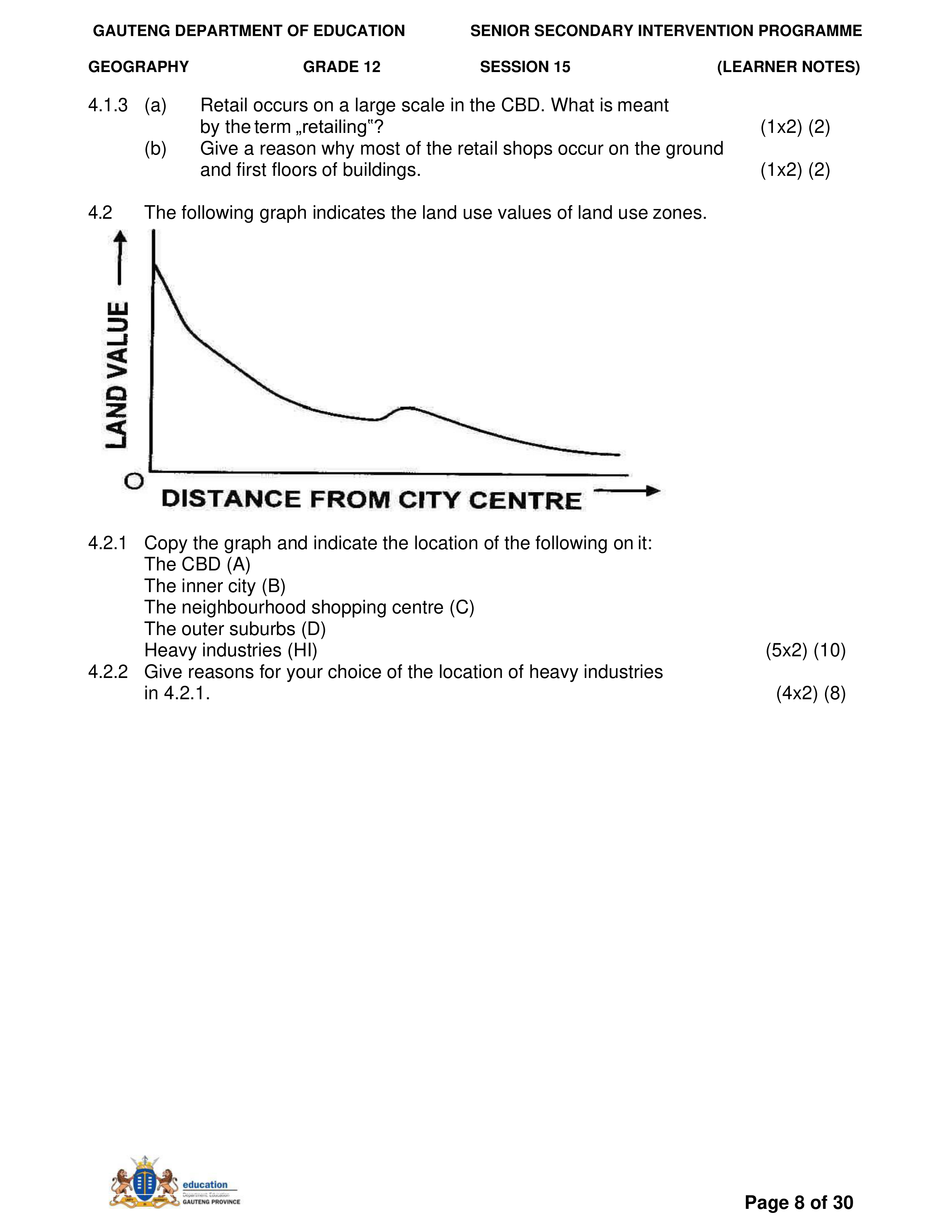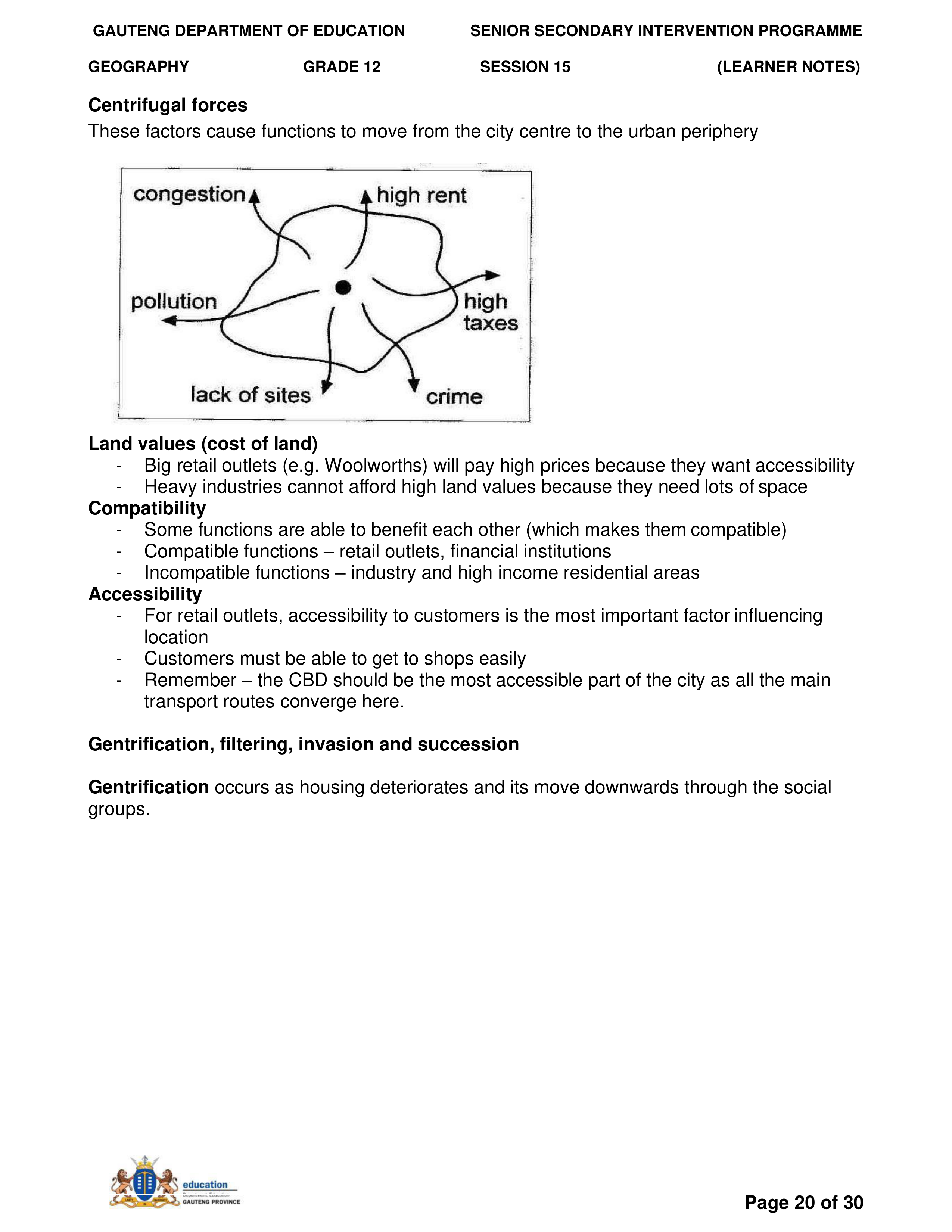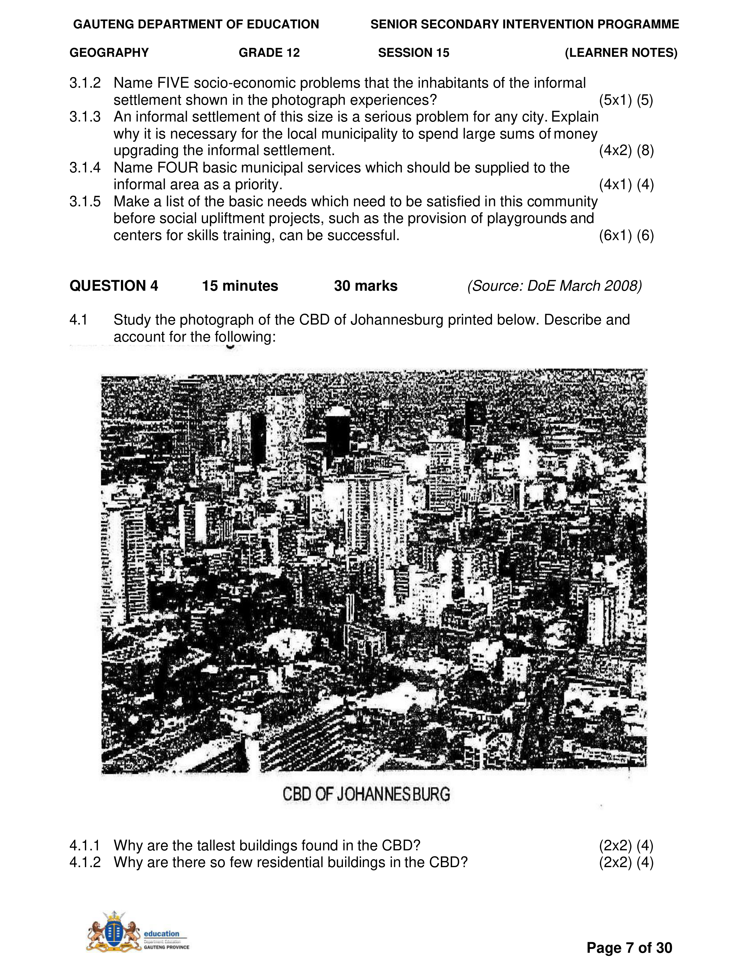 Grade 11 Revision Urban Settlement