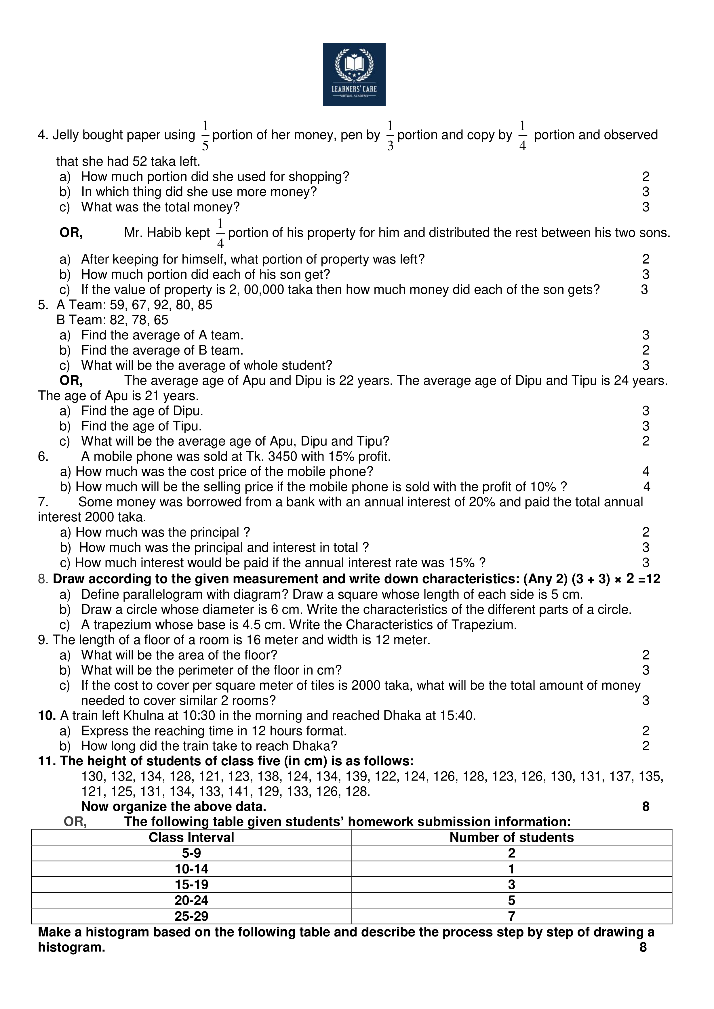7. Some money was borrowed from a bank with an annual interest of 20% and paid the total annual interest 2000 taka.Answer the Questions from:(a, b & c)