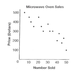 This scatter plot shows a relationship between prices of microwave ovens and the numbers