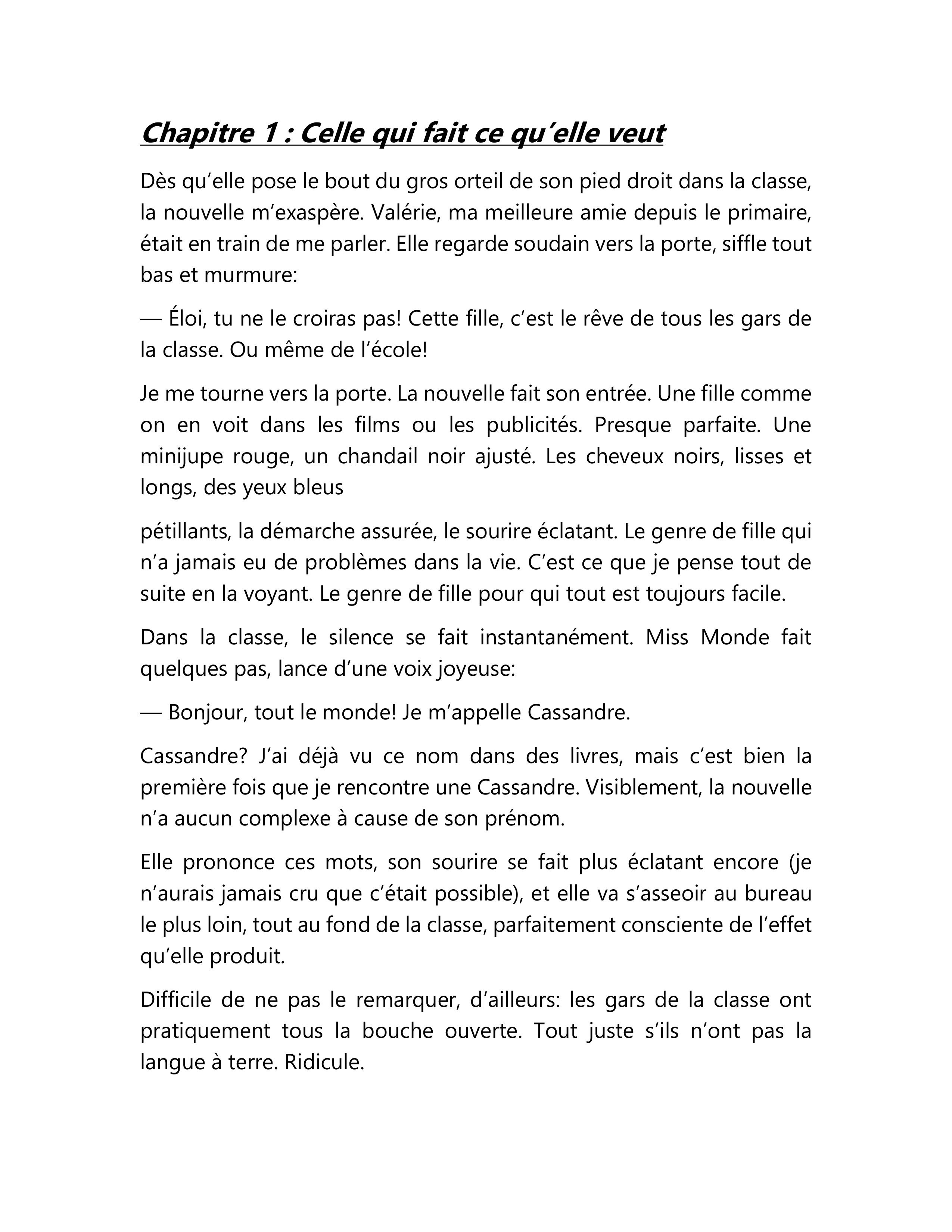 Après avoir relu le chapitre 1, qu’est-ce que l’attitude de Cassandre nous révèle sur sa personnalité? (Nomme, explique et exemplifie)