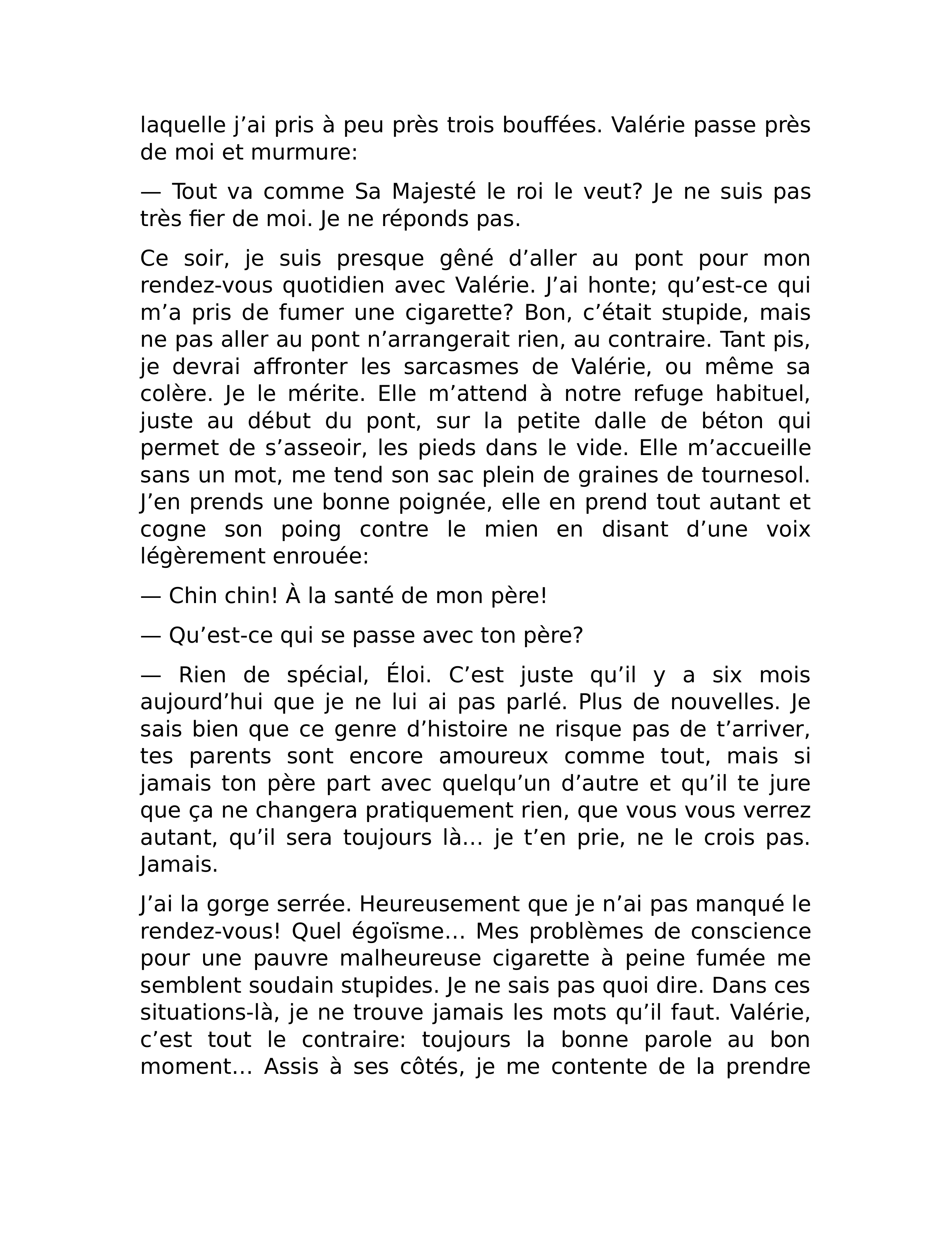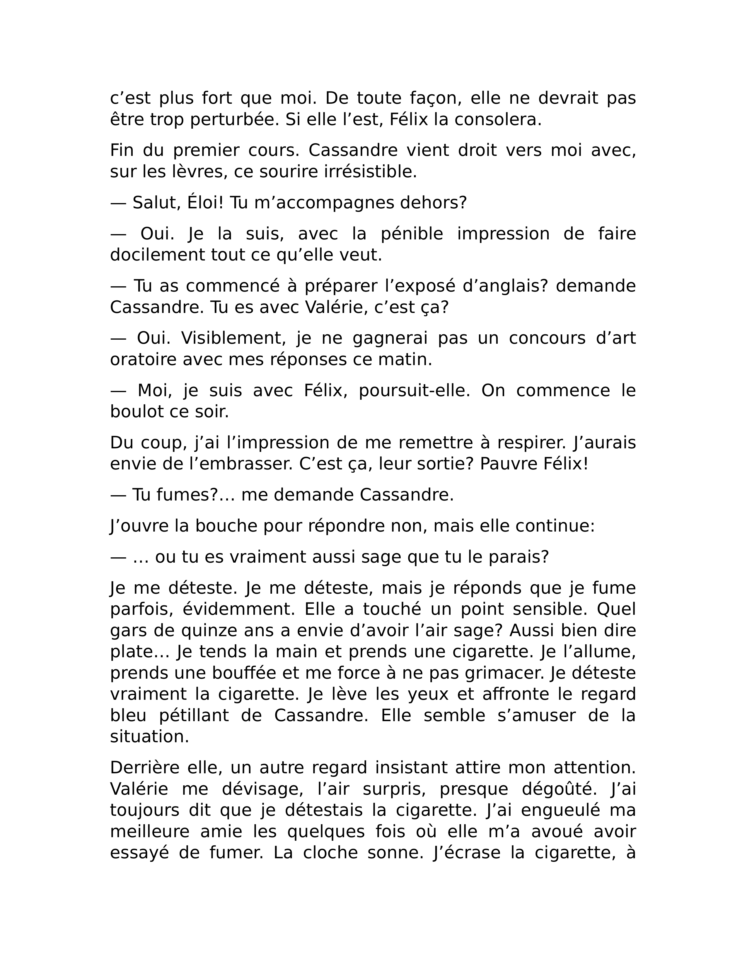Dans tes mots, explique Éloi affirme qu’il se déteste (« Je me déteste. Je me déteste, mais je réponds que je fume parfois, évidemment. ») Sois précis. (Nomme et explique)