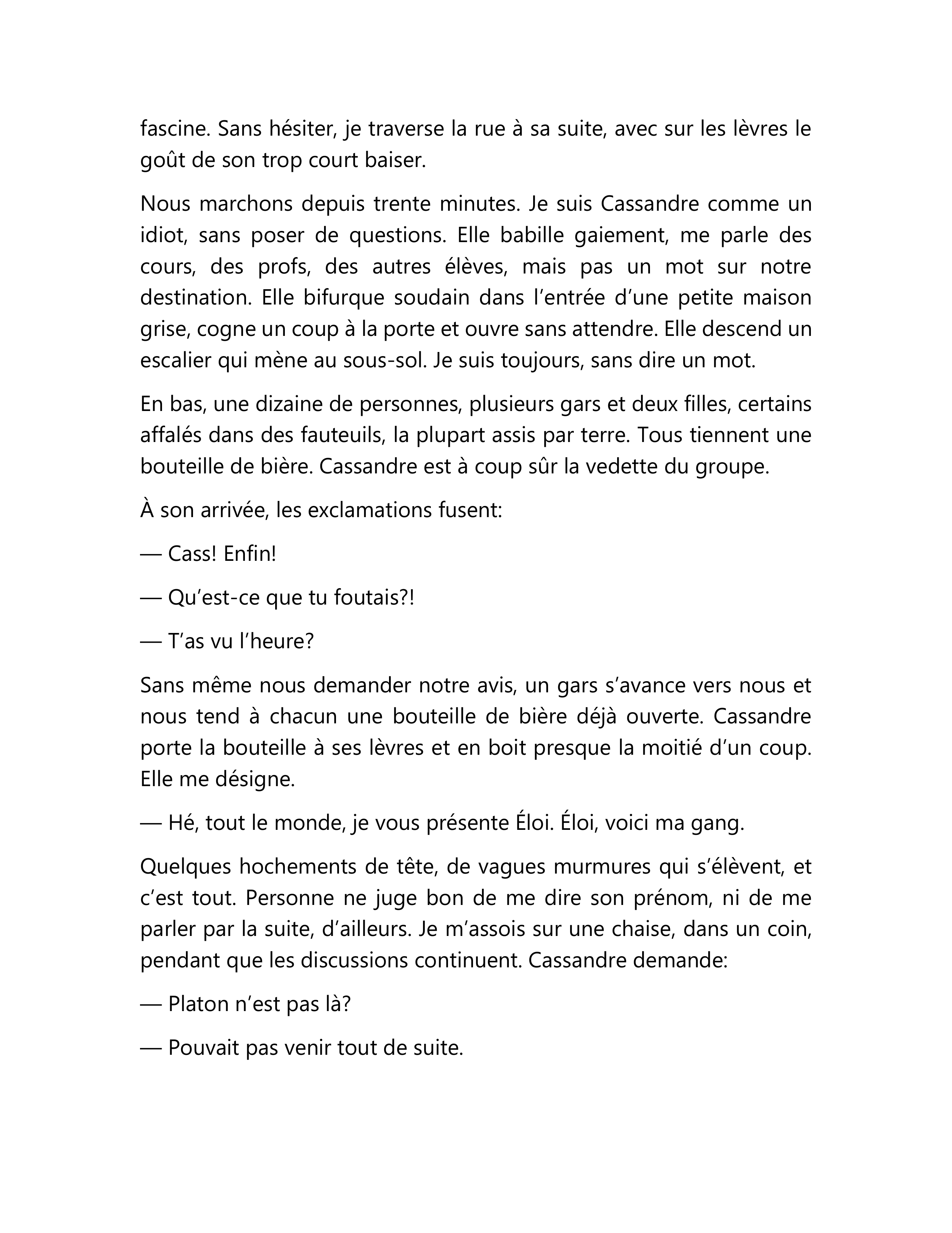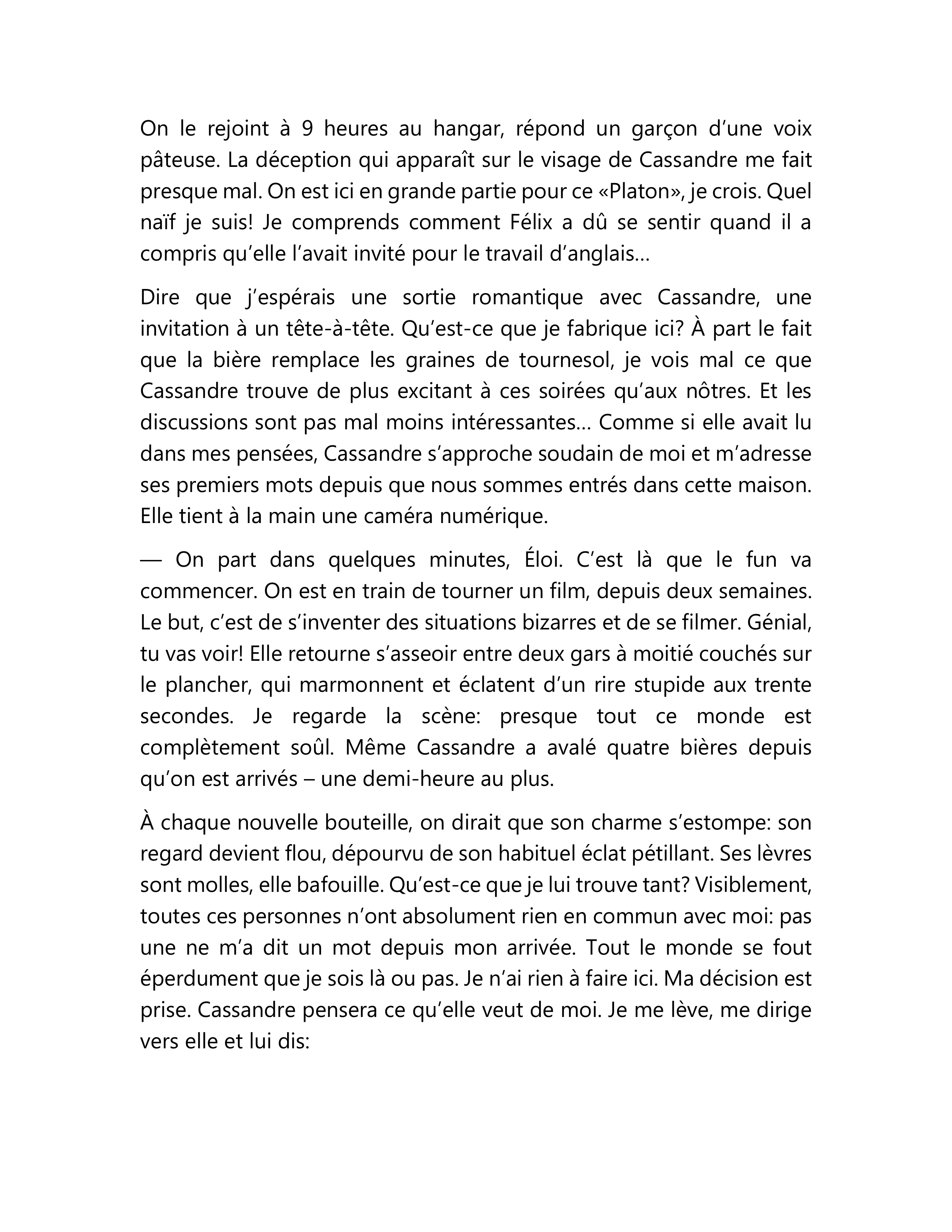 InterprétationSelon toi, pourquoi Éloi termine le chapitre en disant « Quelle soirée pourrie »? (Nomme, explique)