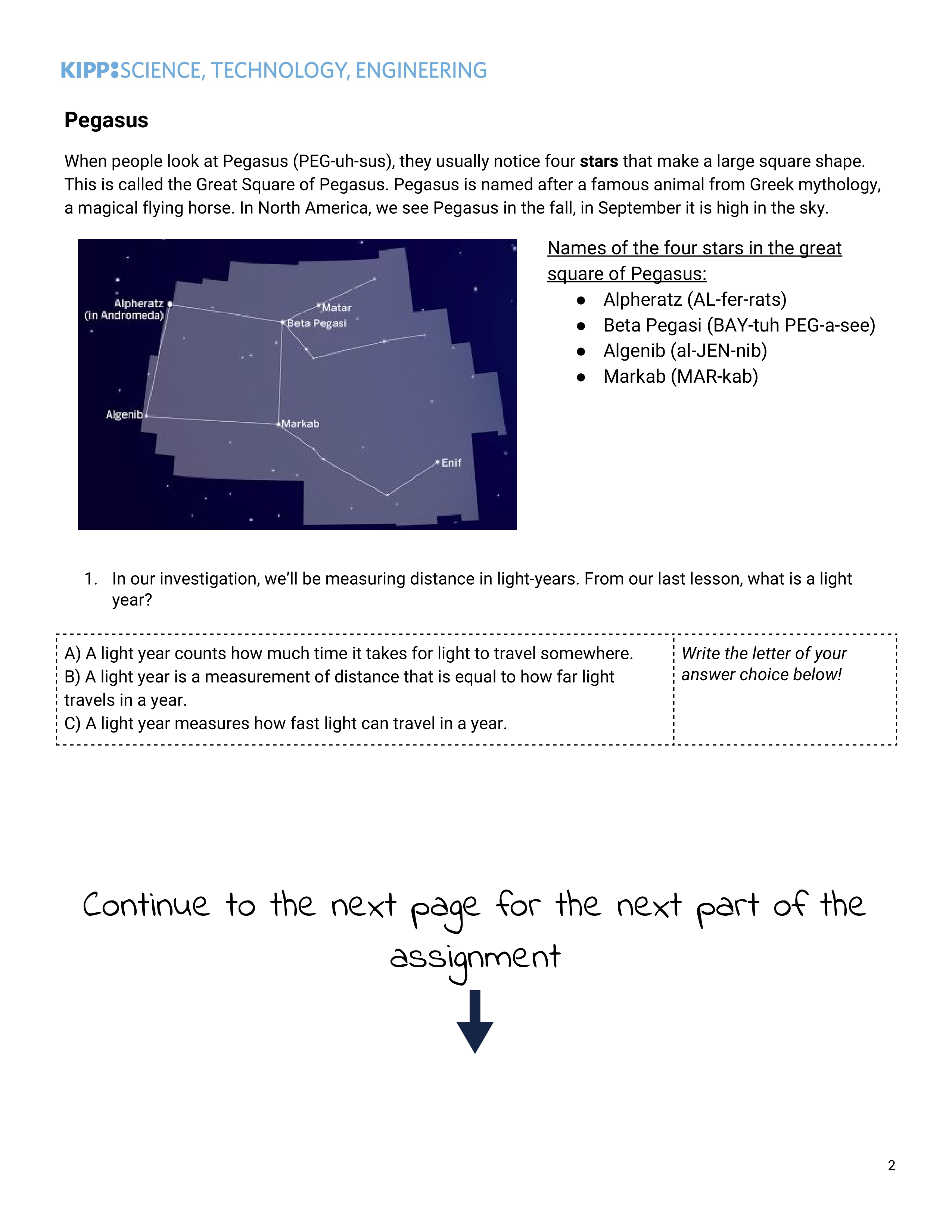 In our investigation, we’ll be measuring distance in light-years. From our last lesson, what is a light year?