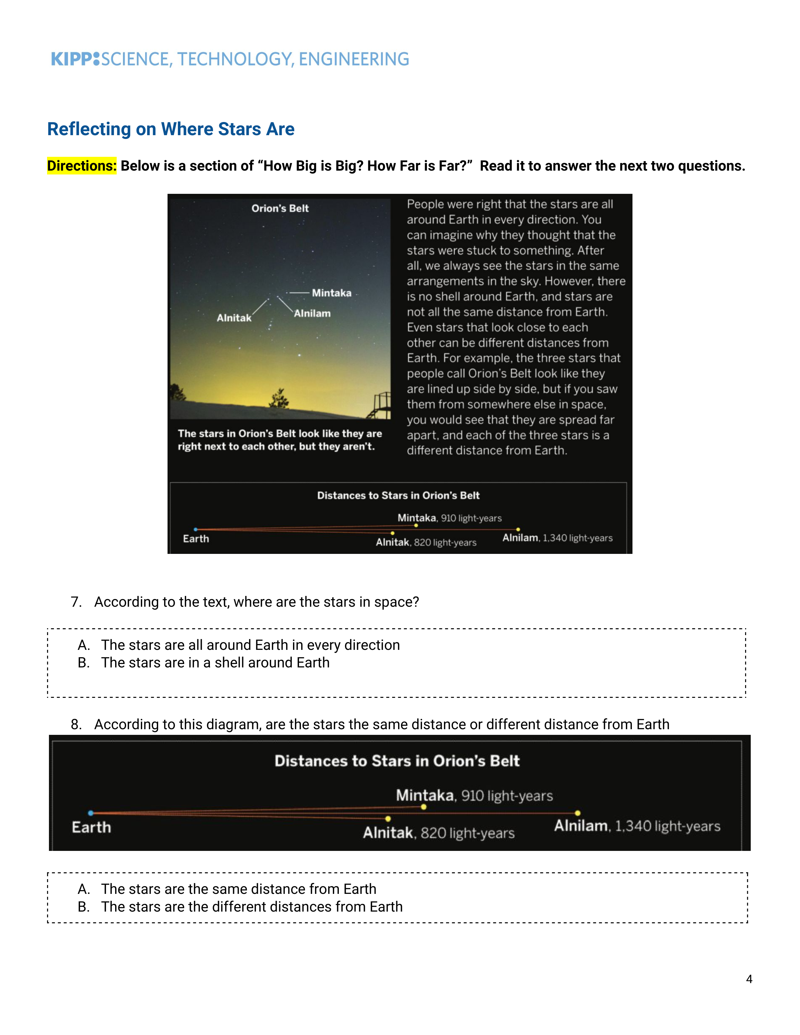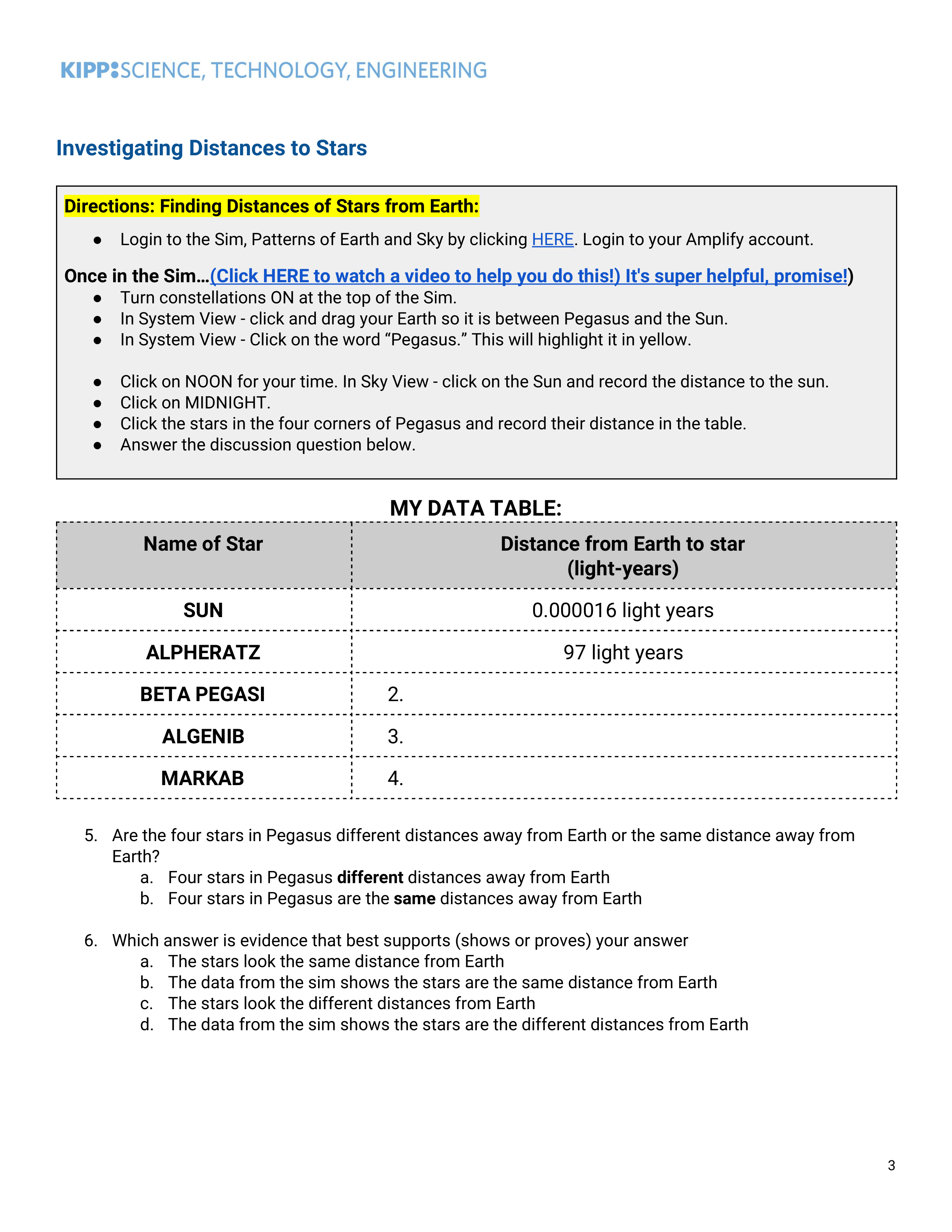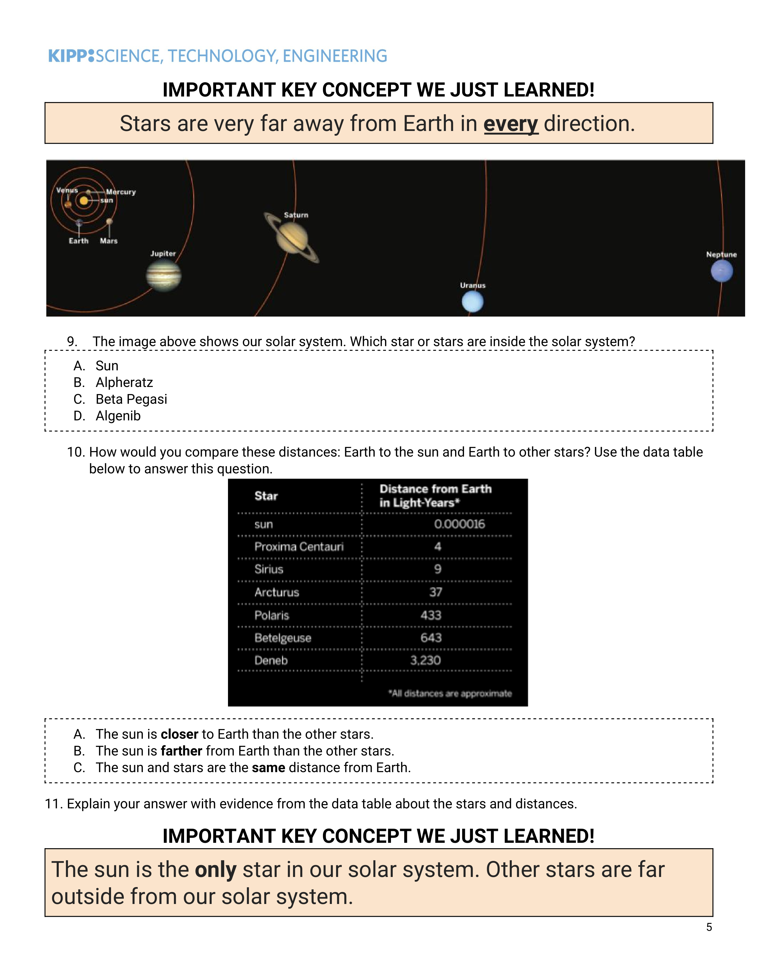 Explain your answer for Question 10 with evidence from the data table about the stars and distances.- You can start your sentence like this: On the data table, it shows _____________ (write what the data table shows that supports your answers for number 10)