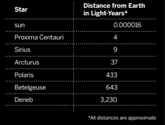 How would you compare these distances: Earth to the sun and Earth to other stars? Use the data table below to answer this question.