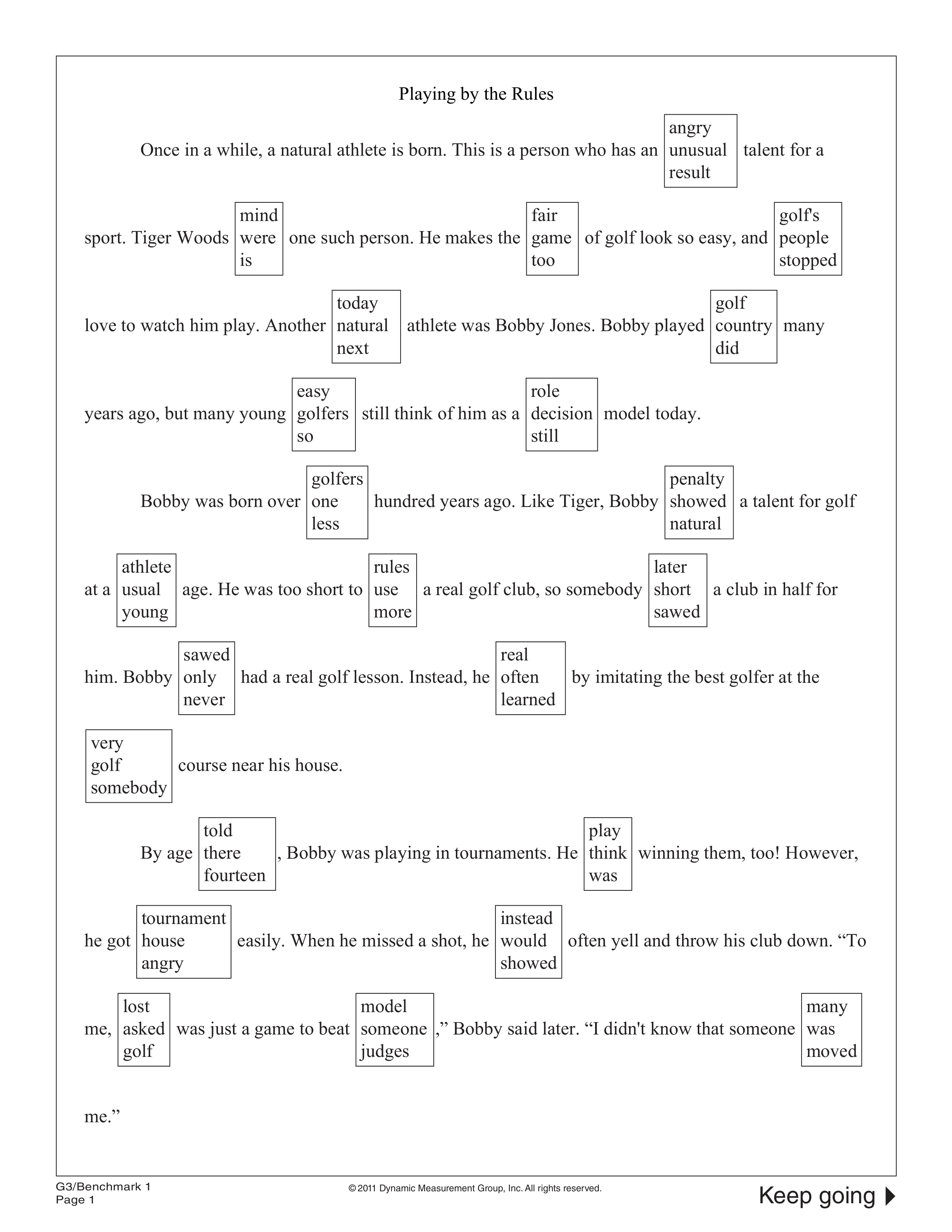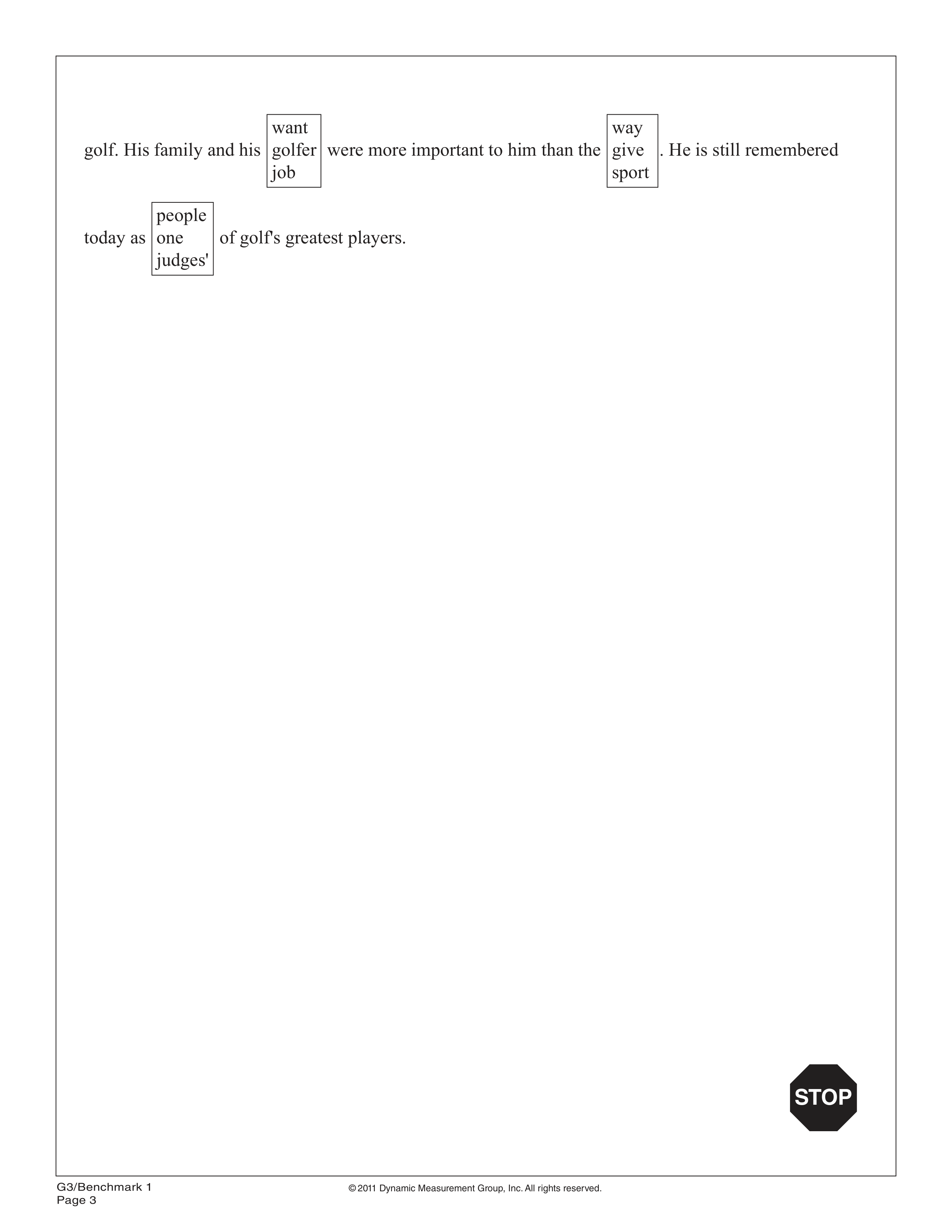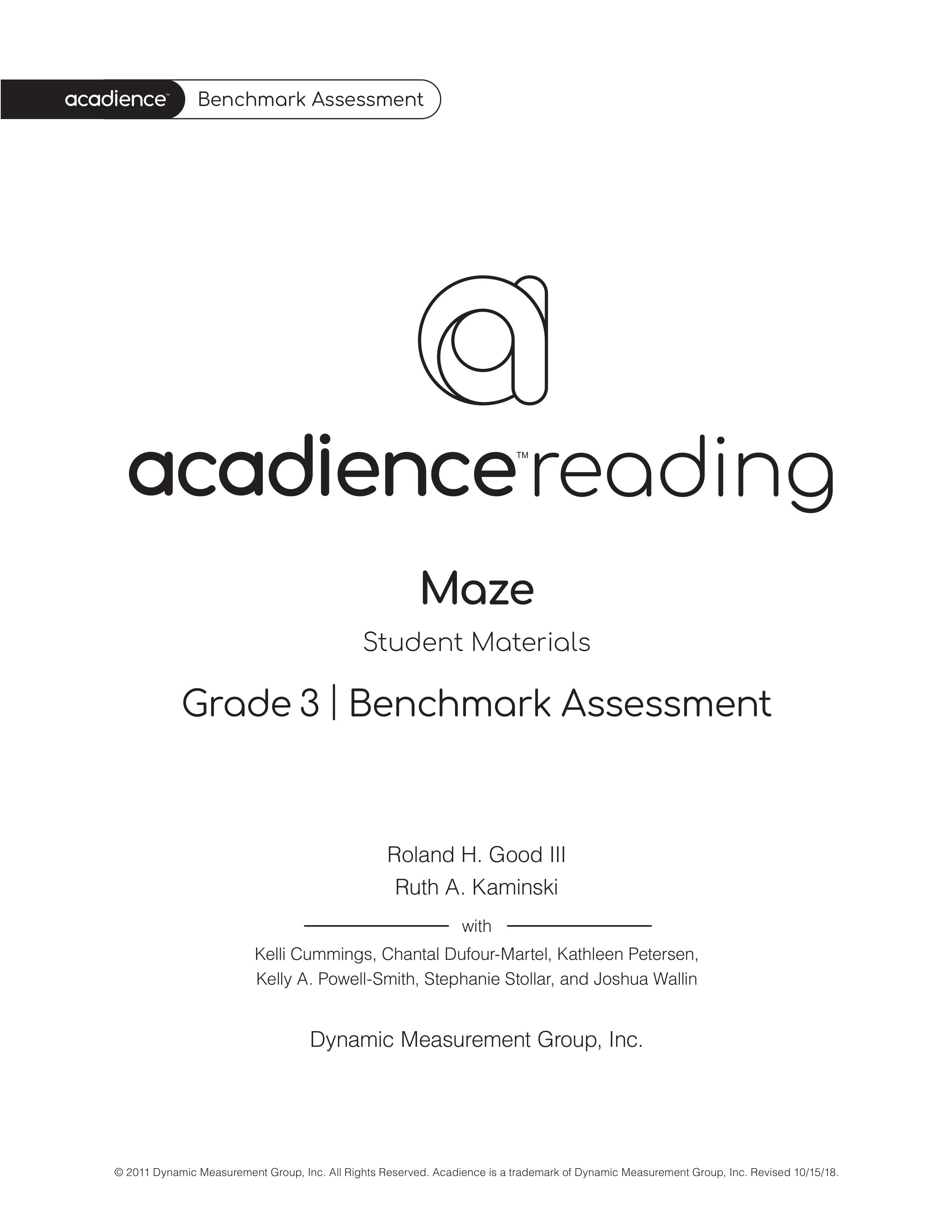 3rd Grade MAZE Fall Benchmark Assessment