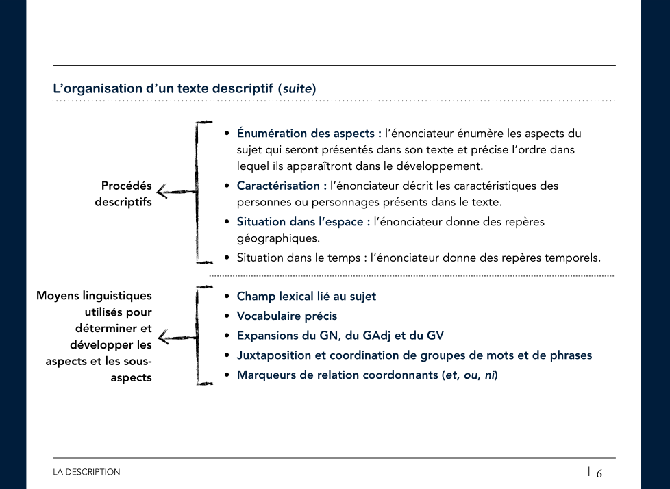 Parmi les énoncés ci-dessous, place ceux qui représentent les aspects principaux