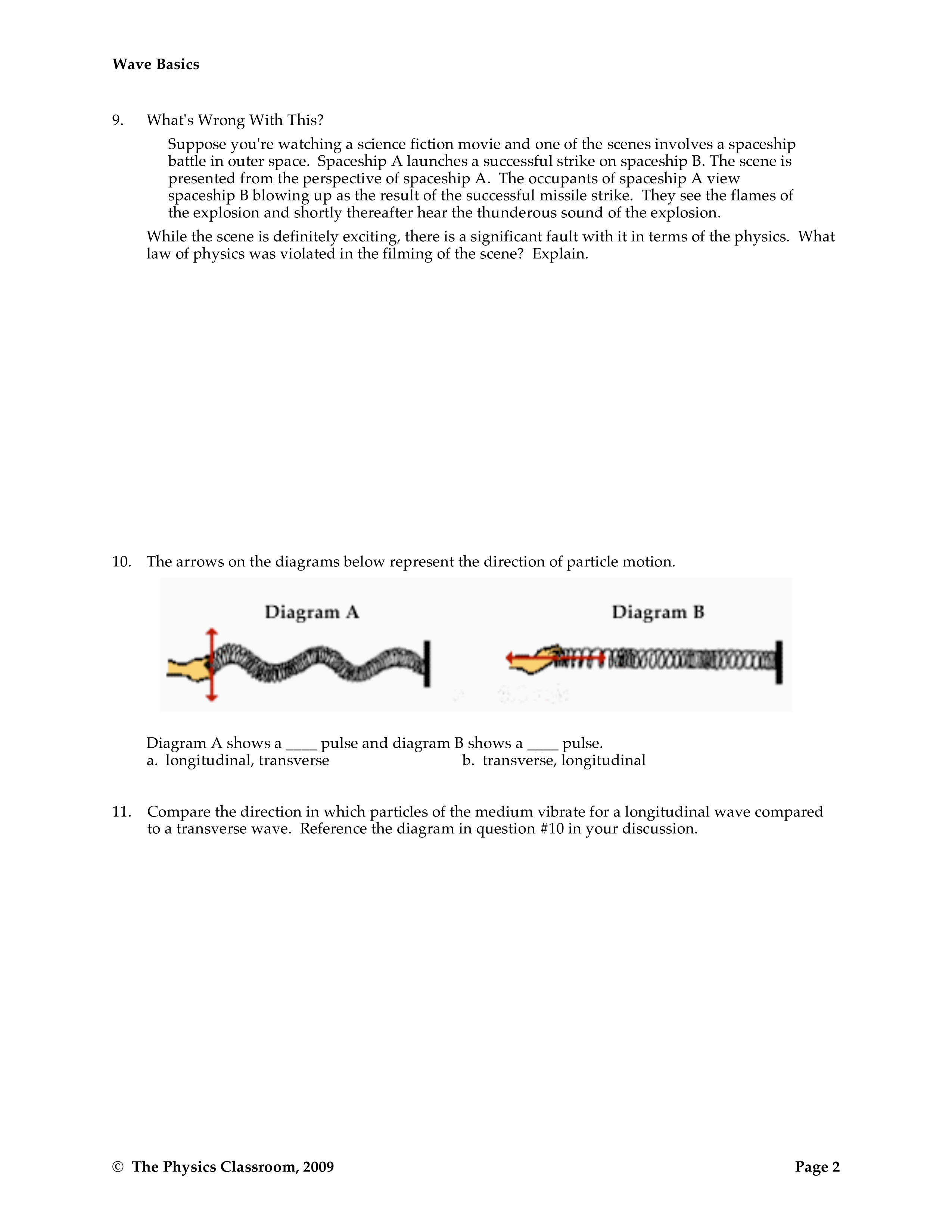 Compare the direction in which particles of the medium vibrate for both waves. Reference the diagram in question #10 in your discussion.