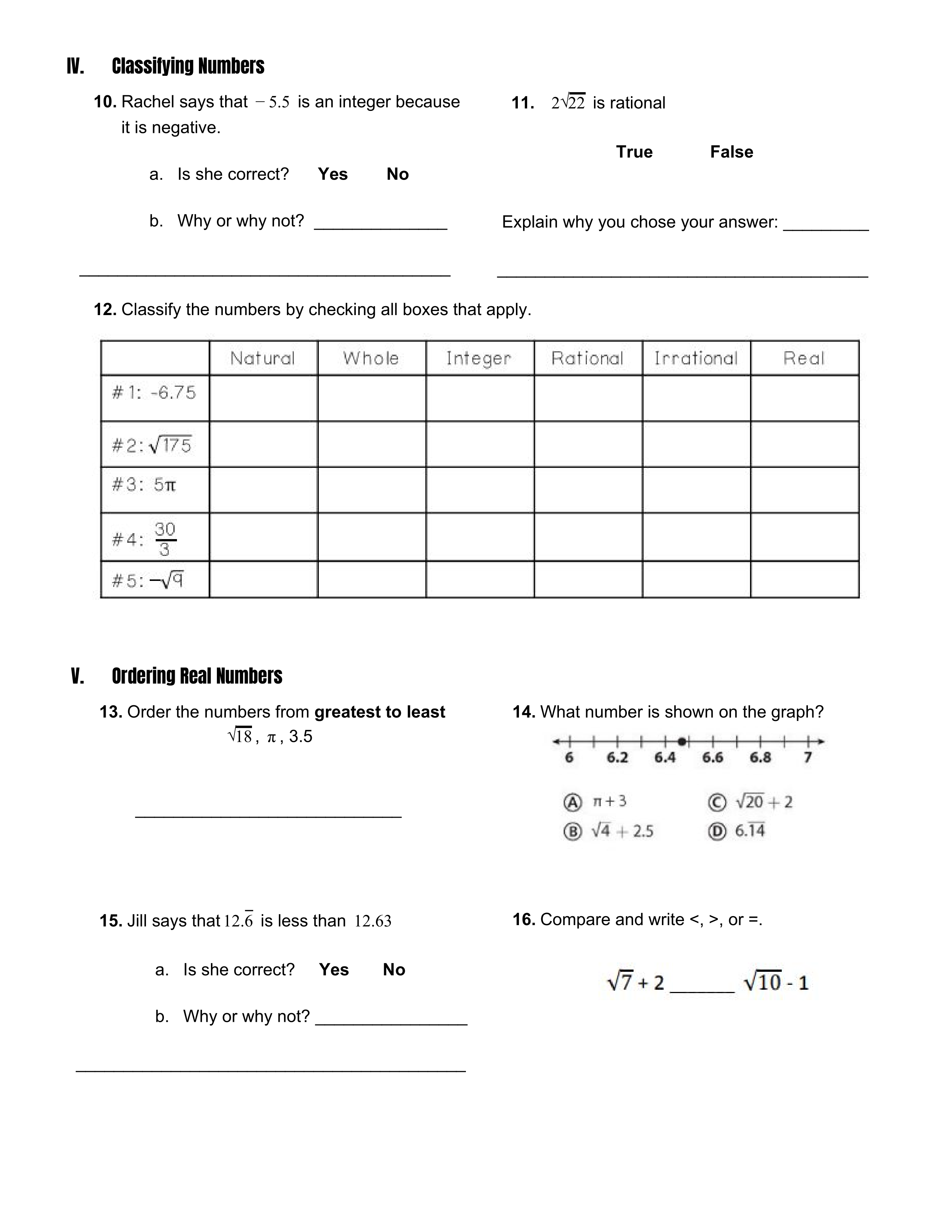 12.#3 Classify the numbers by checking all boxes that apply.