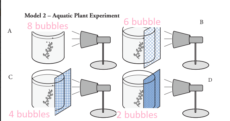 Plant A has 100% light reaching it. How many oxygen bubbles formed?