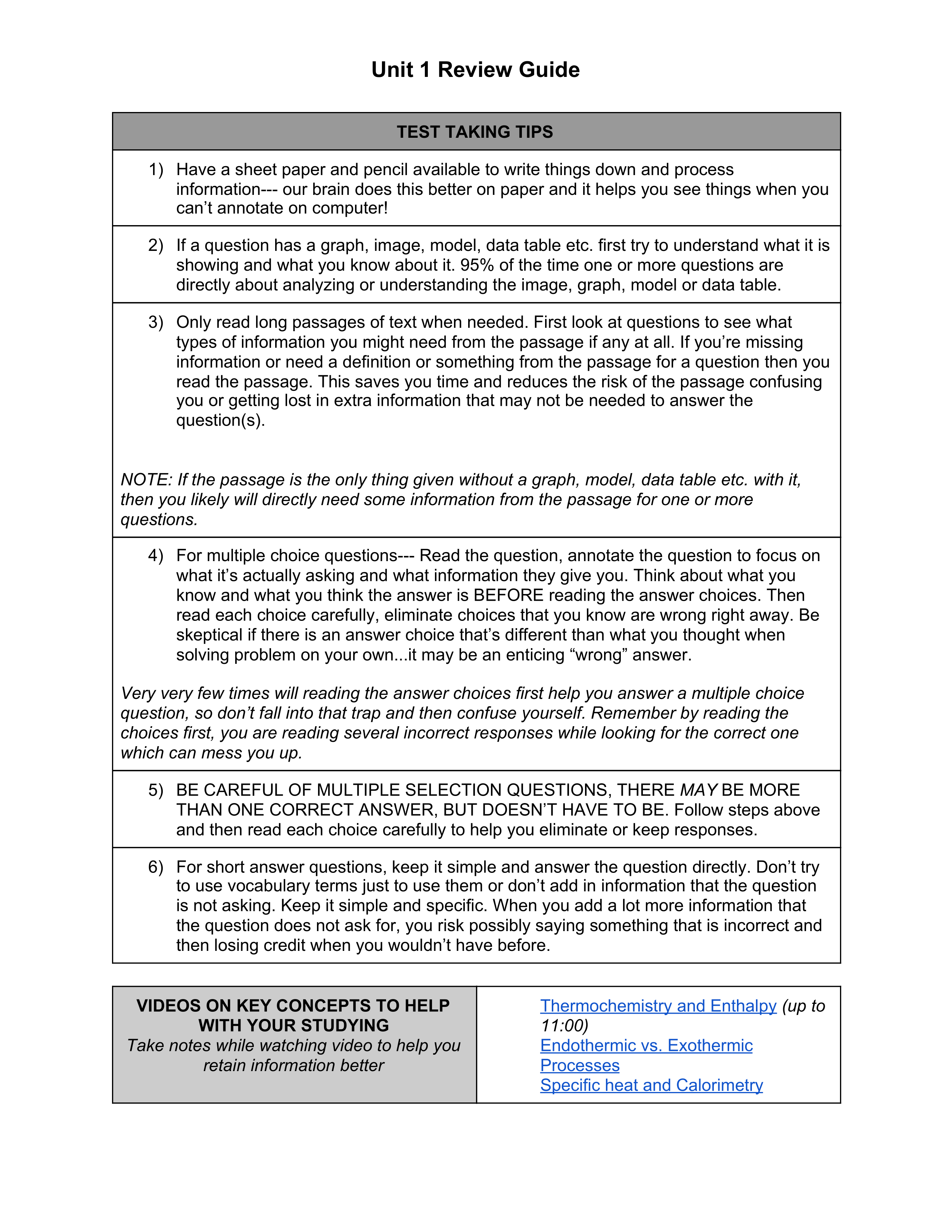 Unit 1 Review Guide