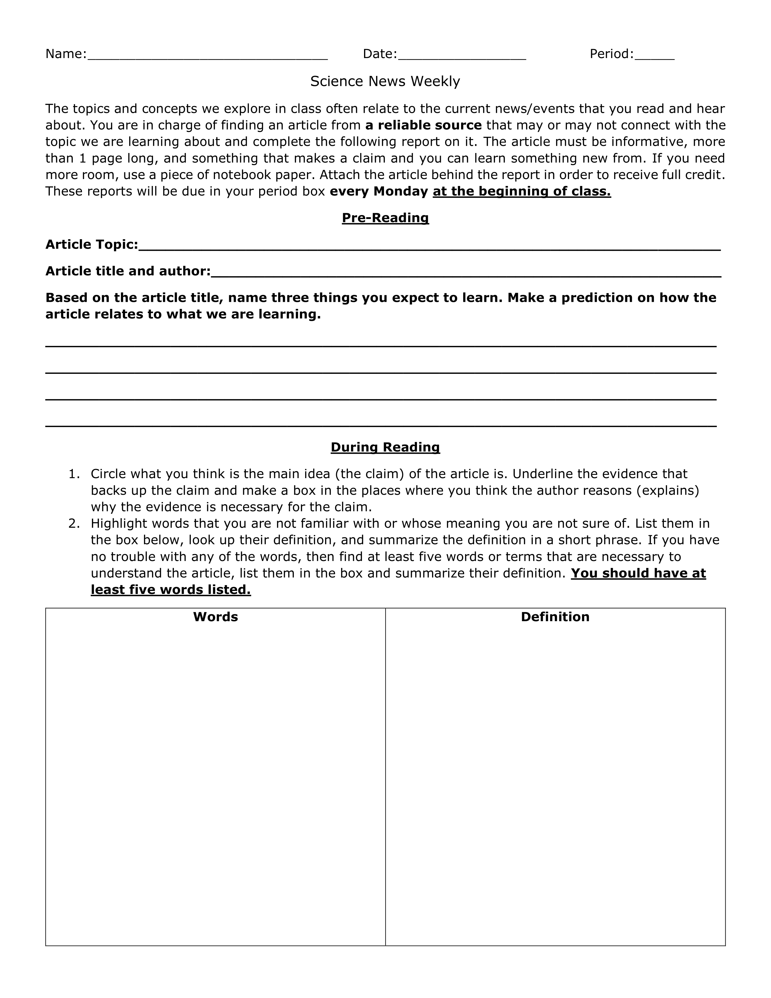 Name 3 things you expect to learn and make a prediction about the article. (Write in full sentences.)