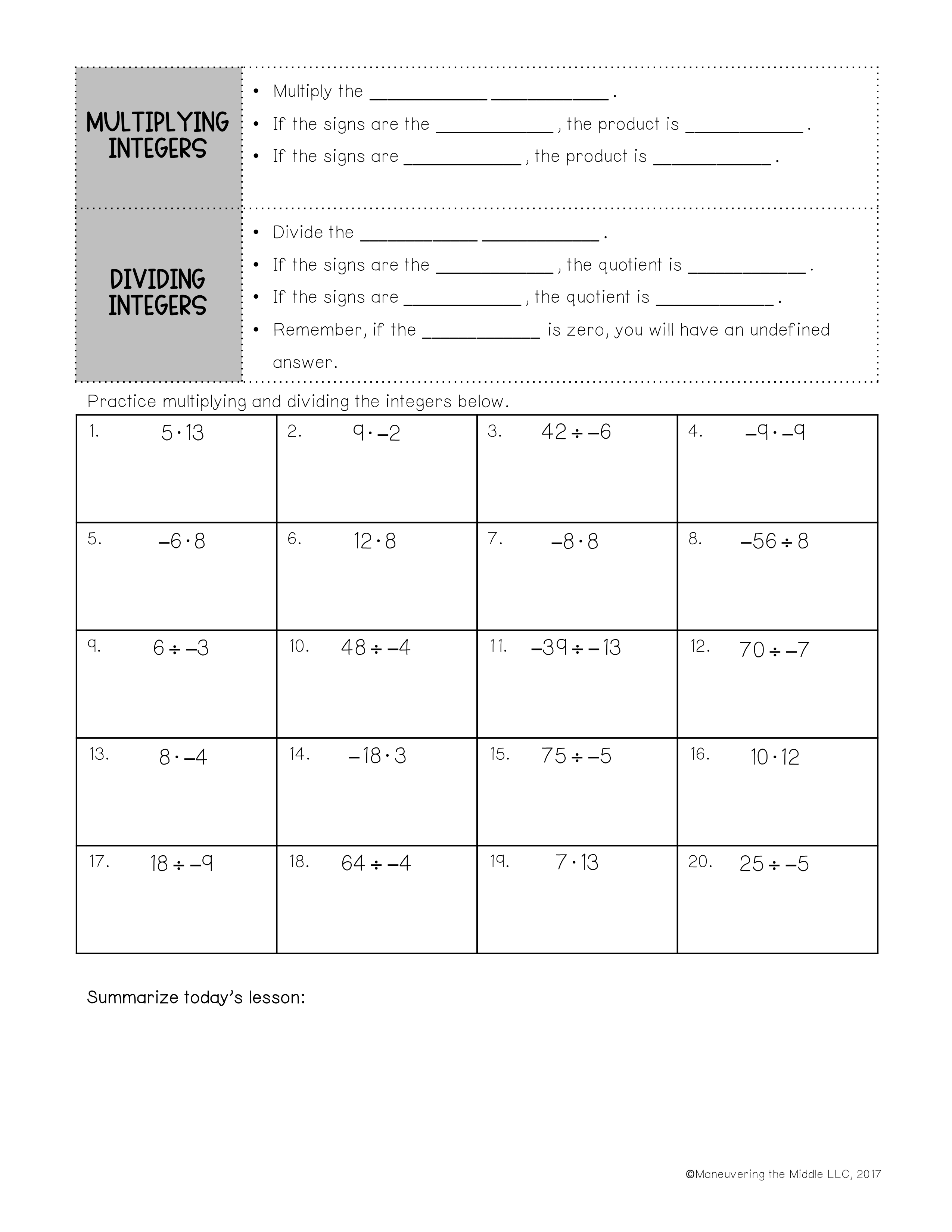 Show one tool that will help you evaluate signs when multiplying and dividing integers.