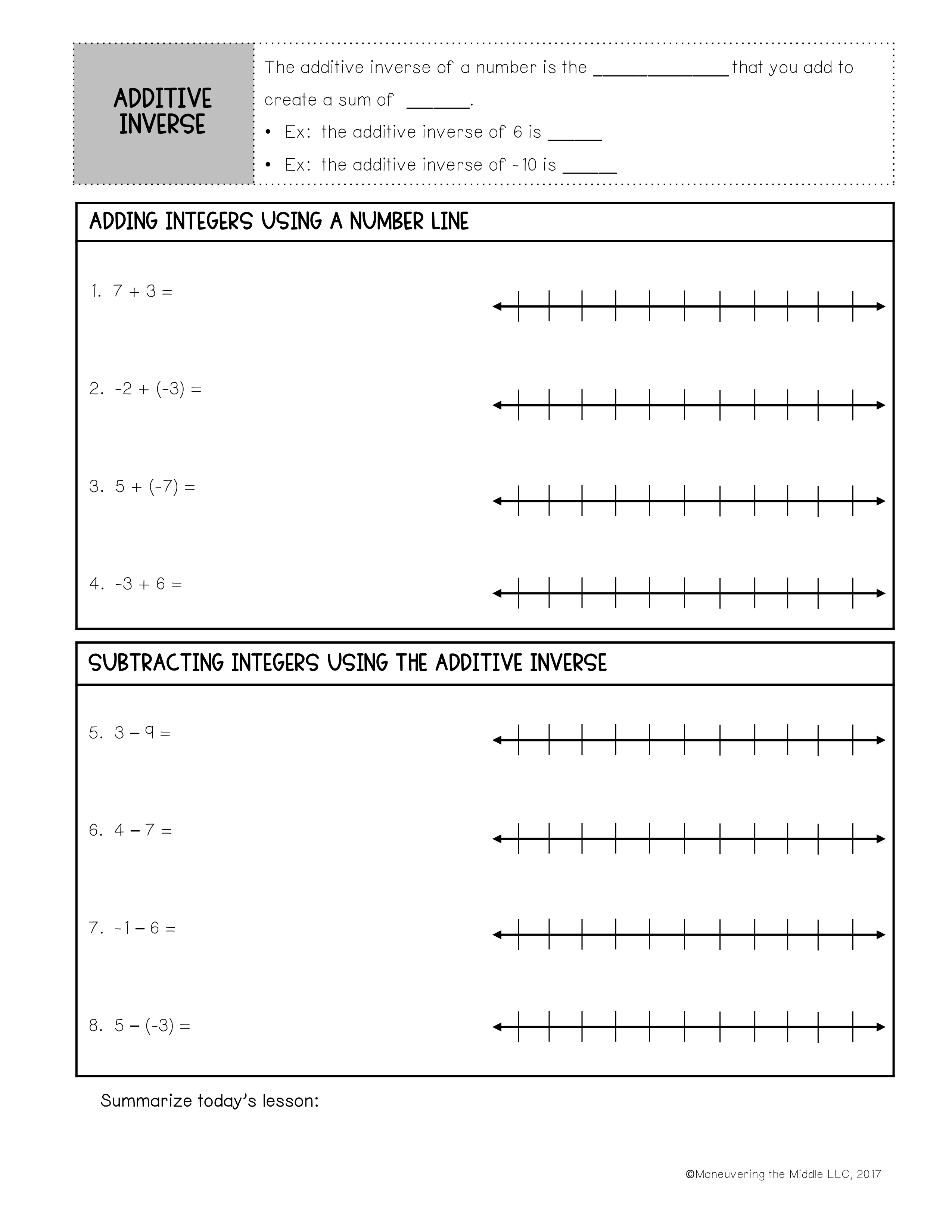 Use the white board to draw a number line and represent the equation with arrows. THEN find the solution.