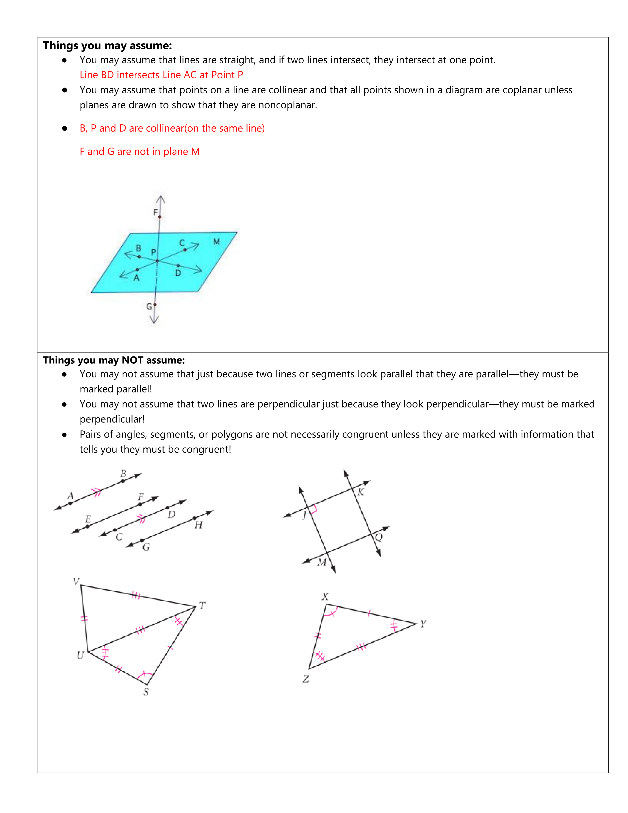 Which lines can you assume are parallel? perdendicular? Remember to name your lines using any two points on the line.