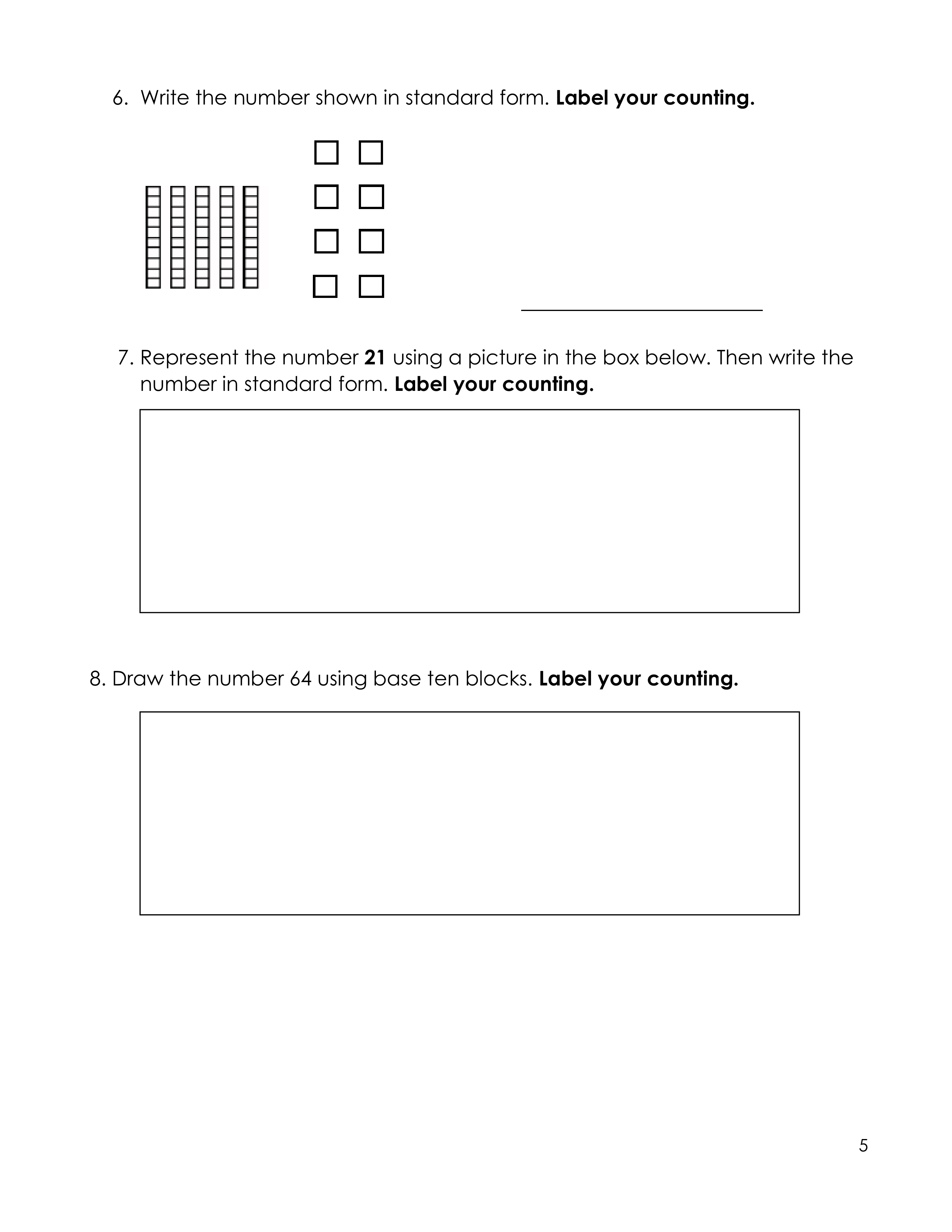 Represent the number 21 using a picture in the box below. Then write the number in standard form. Label your counting.