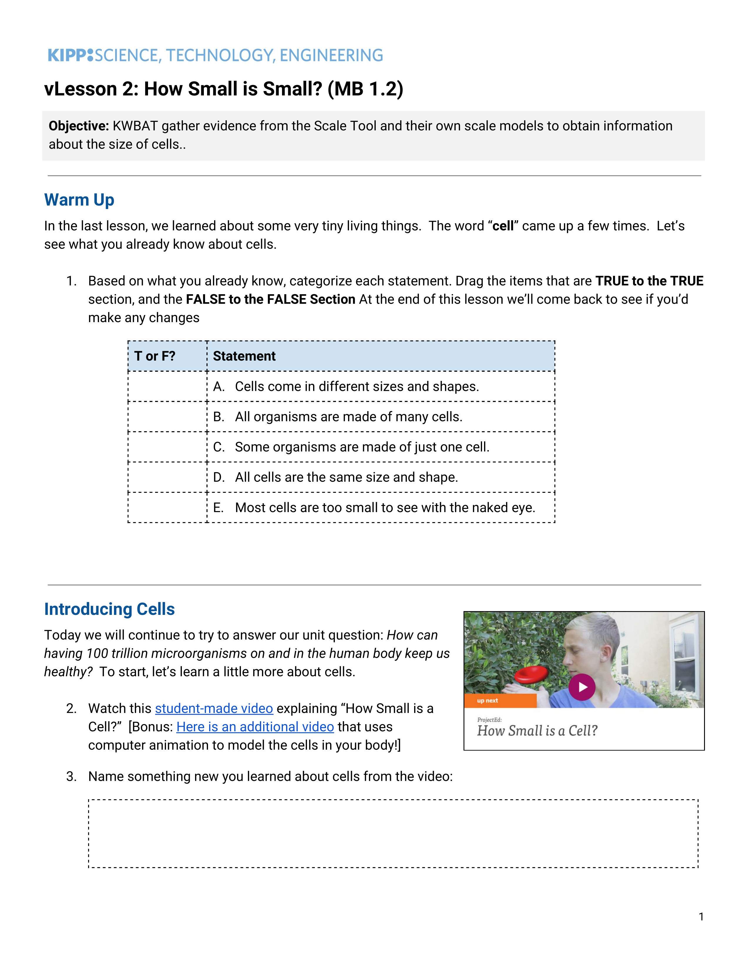 Name something new you learned about cells from the video.