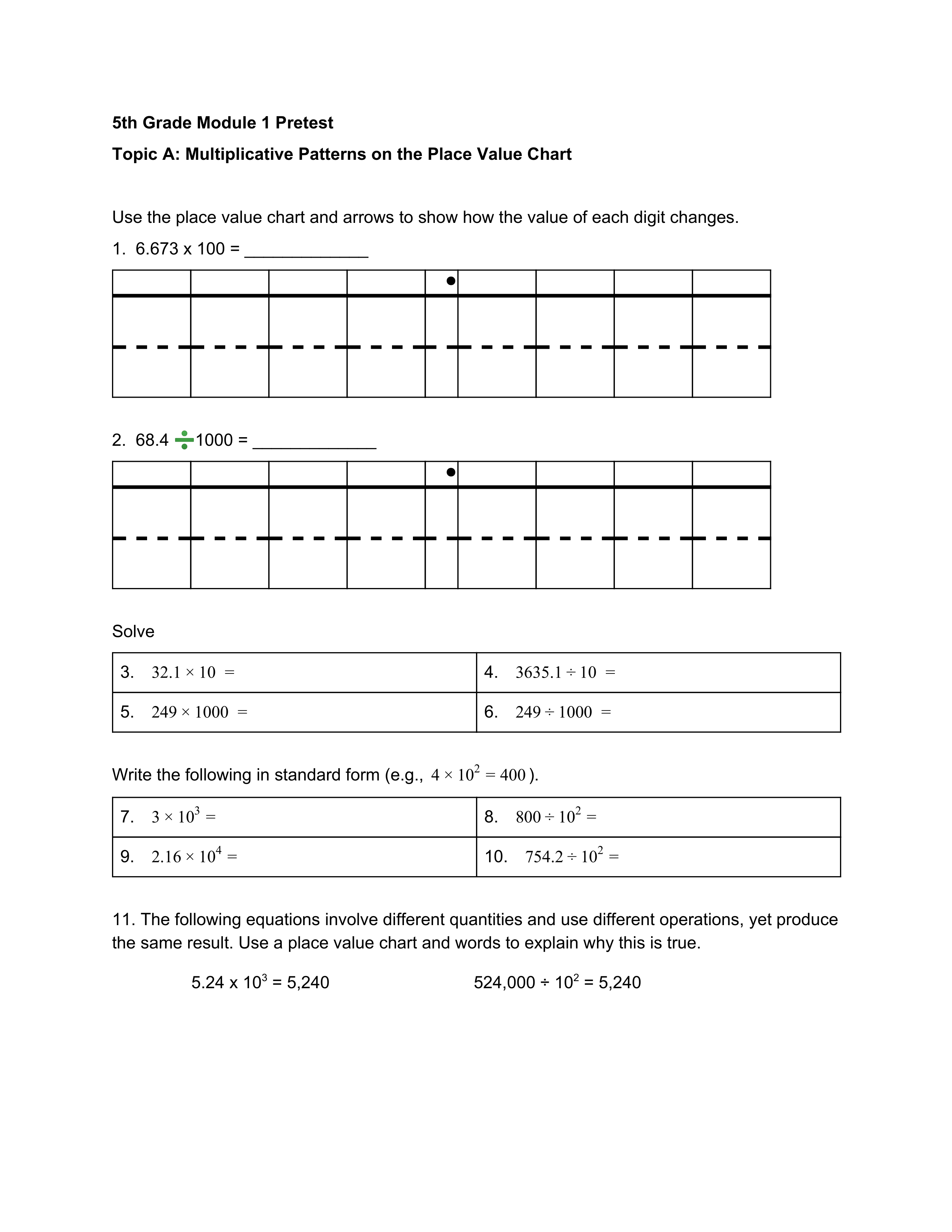 The following equations involve different quantities and use different operations, yet produce the same result. Use a place value chart and words to explain why this is true.