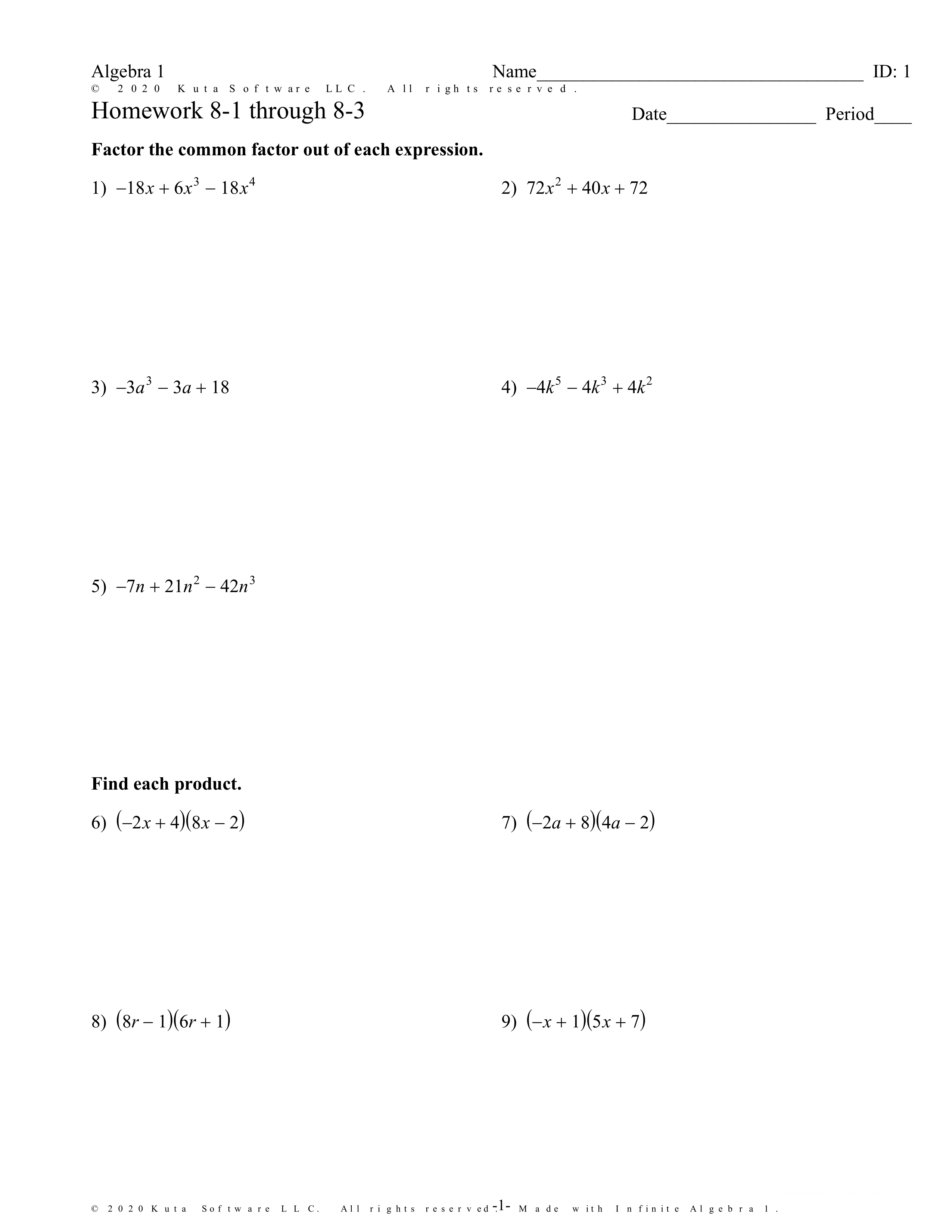 Use one of the three methods in class (Distribution, Table, or FOIL). Show all work and box your final answer.
