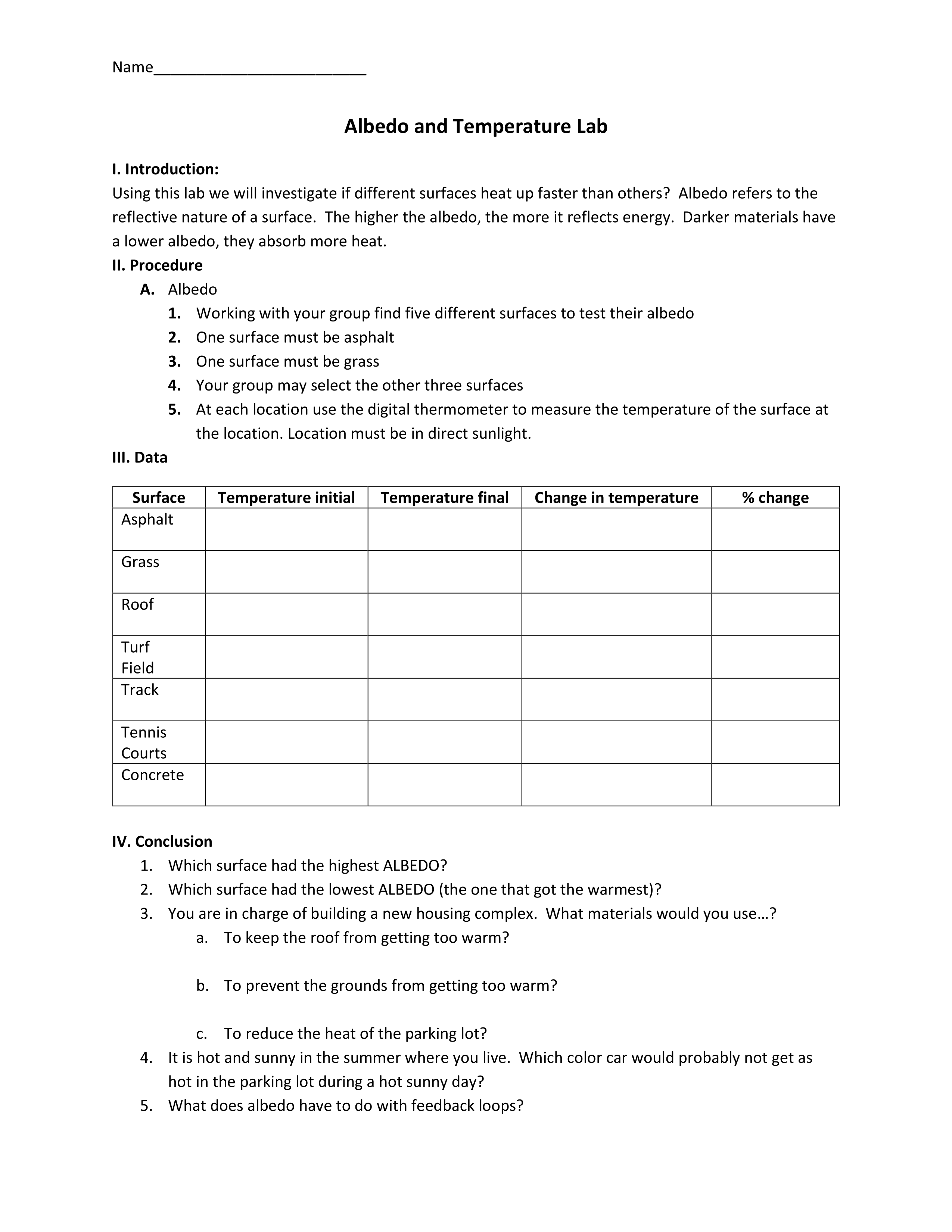 Use the "T" tool to fill in the chart. % change is found using this formula. ((Temp final - Temp initial)/Temp initial) x 100.